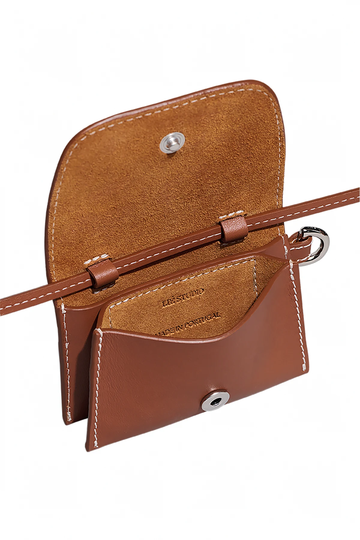 Kształt prostokątny z zaokrąglonymi krawędziami oraz minimalistyczny wzór podkreślają jego subtelną elegancję. Wykonany z najwyższej jakości skóry o gładkiej teksturze, portfel emanuje ponadczasowym szykiem. Białe, kontrastowe przeszycia wokół krawędzi dodają mu wyrazistości, a białe logo „LIÉ STUDIO” na przedniej klapie stanowi dyskretny znak luksusu.