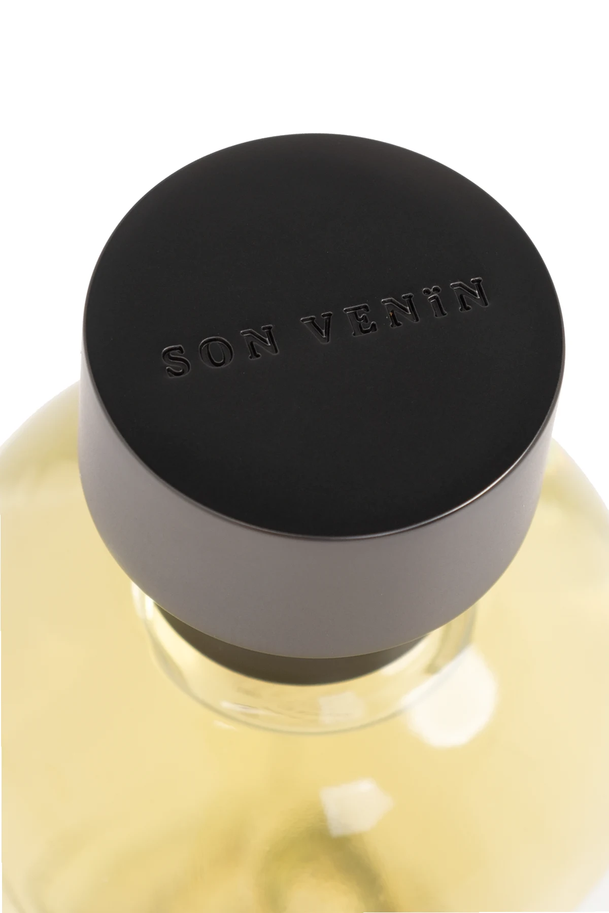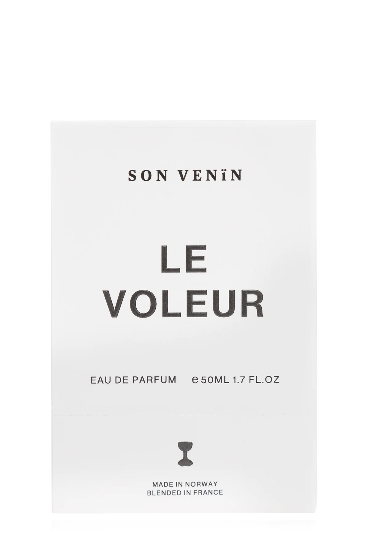 Flakon LE VOLEUR cechuje się wyrafinowanym designem. Zaokrąglona butelka z odstającą szyjką, wykonana z przezroczystego szkła ukazującego jasny płyn perfum, otulona jest kremową barwą. Czarna, matowa zakrętka z wygrawerowaną nazwą marki "SON VENIN" dodaje całości nowoczesnego stylu. Biała etykieta z czarnym napisem "LE VOLEUR" dopełnia eleganckiego wyglądu.