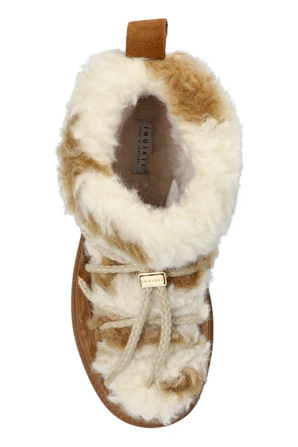 Zamszowa, brązowa warstwa zewnętrzna harmonijnie współgra z delikatnymi wstawkami kremowo-białego futerka, które otulają górę cholewki, podkreślając ekskluzywny charakter obuwia. Wewnętrzna wyściółka z miękkich materiałów gwarantuje niebywały komfort noszenia nawet w najchłodniejsze dni.