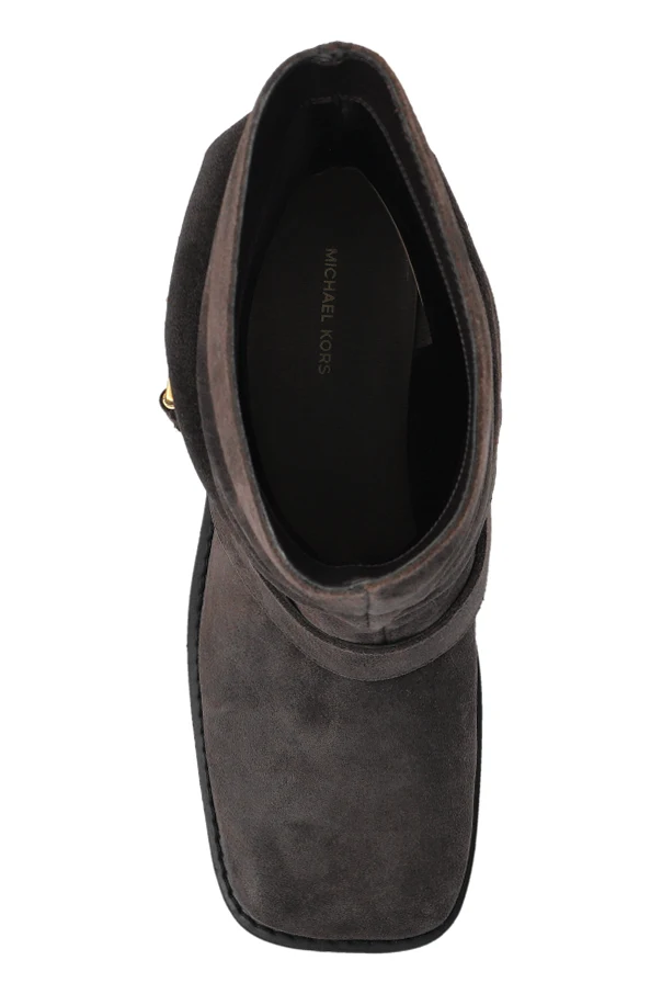 Minimalistyczna forma przełamana została stylowym paskiem, który podkreśla wyrafinowany charakter obuwia. Zarówno zewnętrzna, jak i wewnętrzna część botków została wykonana z wysokogatunkowej skóry, gwarantującej trwałość i luksusowy wygląd. Precyzyjne przeszycia i uwaga poświęcona detalom oddają mistrzostwo renomowanego projektanta Michael Michael Kors .