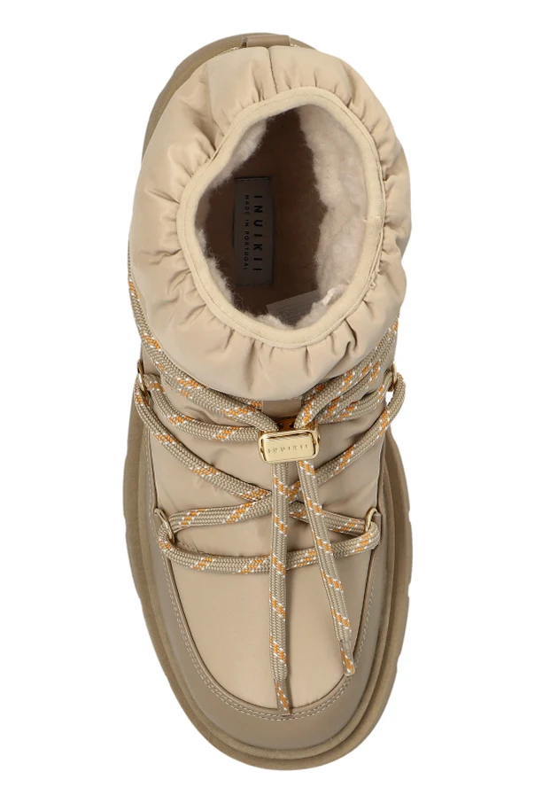 Odkryj wyjątkowe śniegowce ‘Biker Puffer’ marki Inuikii – model, który subtelnie łączy wysublimowaną estetykę z funkcjonalnością. Masywna, solidna konstrukcja, sięgająca ponad kostkę, doskonale komponuje się z beżowym odcieniem, nadając butom ponadczasowego szyku.