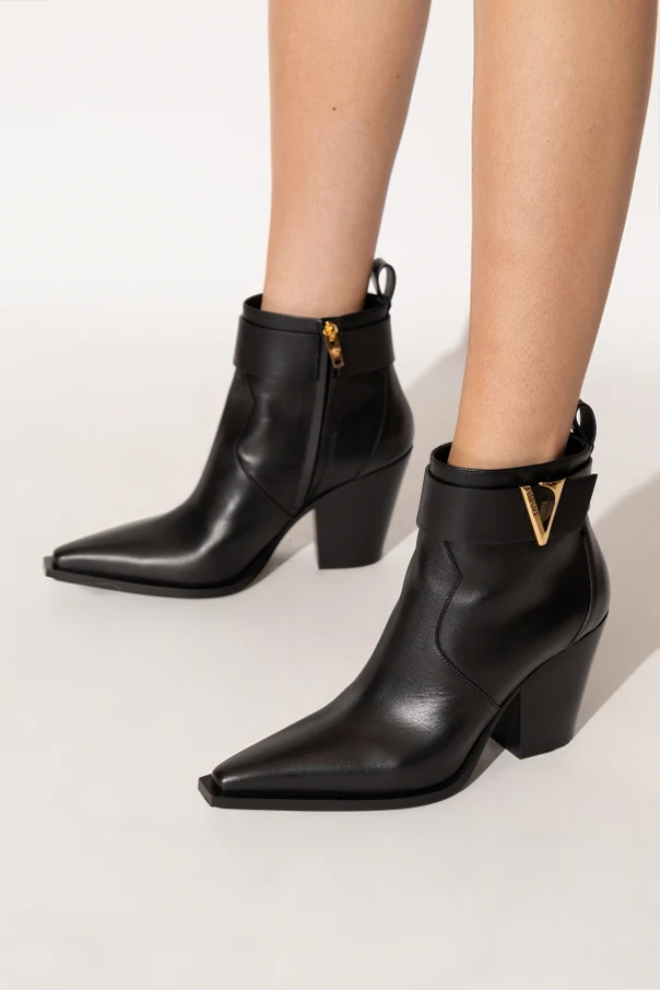 Praktyczny zamek błyskawiczny umieszczony z boku ułatwia zakładanie, zaś szeroki pasek wokół kostki zdobi złote logo „V” – niepowtarzalny emblemat wirtuoza stylu.