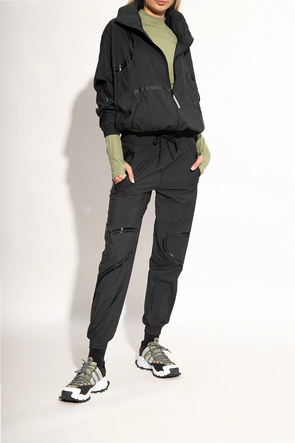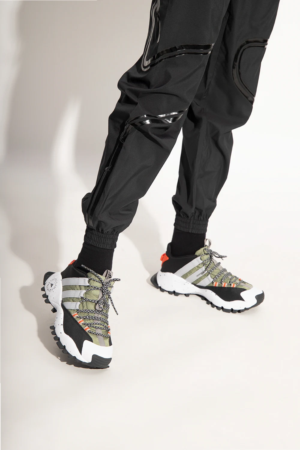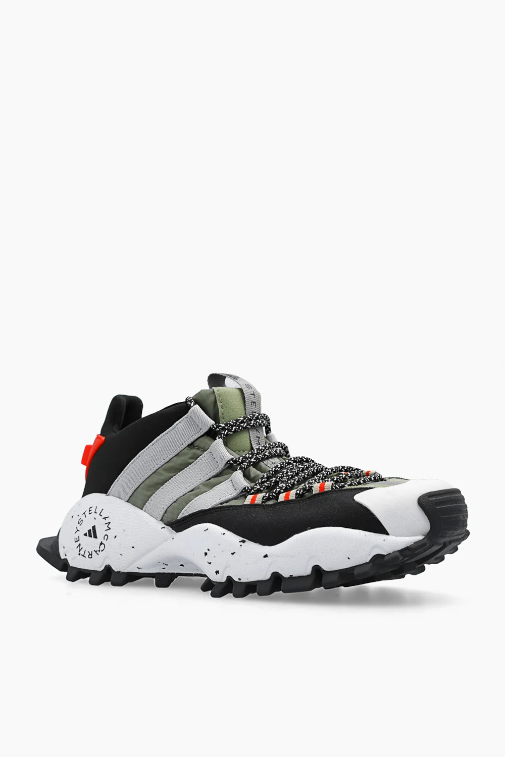 Kolorowe, sznurowane buty sportowe, model ‘Seeulater’ ADIDAS by Stella McCartney. Wodoodporna, tekstylna cholewka Primeblue wykonana z materiałów pochodzących z recyklingu. Wykończone gumą. Na języku oraz z boku ozdobione logo. Biała podeszwa środkowa z pianki EVA. Czarna, gumowa podeszwa zewnętrzna z bieżnikiem zwiększającym przyczepność.