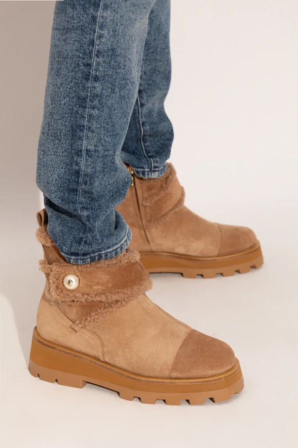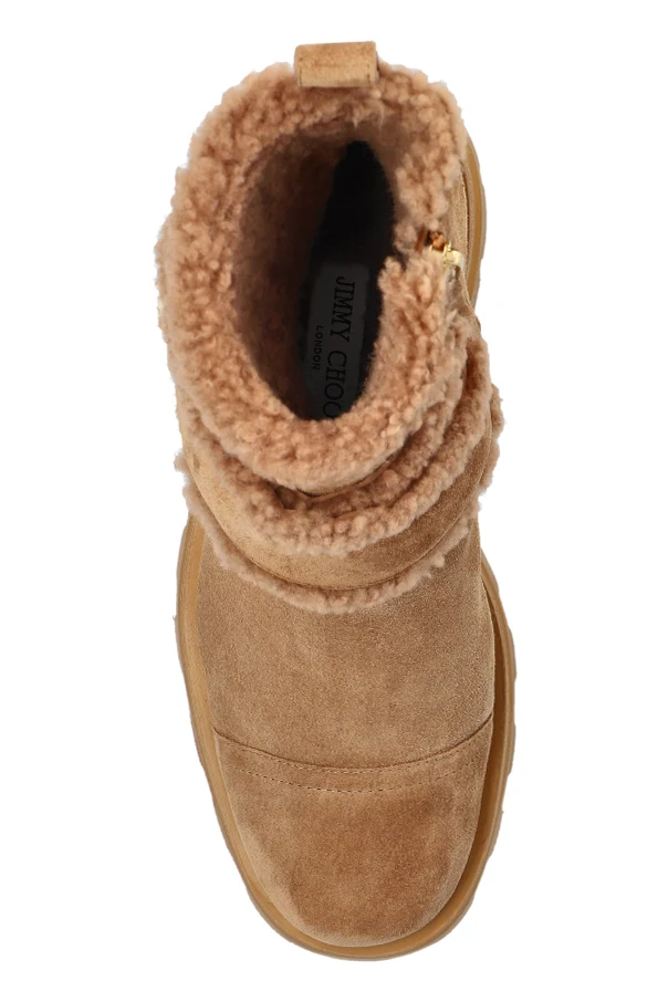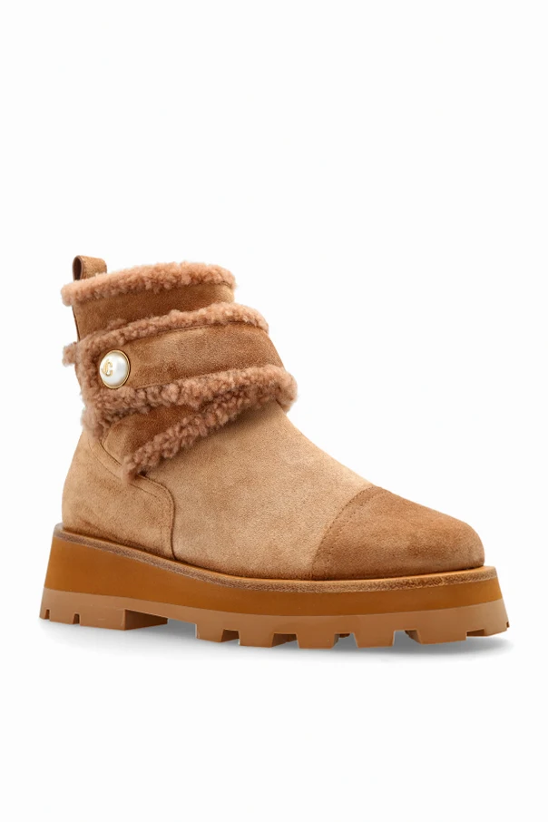 Ich charakterystyczny kształt – zaokrąglony czubek i masywna, głęboko żłobiona podeszwa – podkreśla nowoczesny, lekko outdoorowy charakter, zaś dwa szerokie paski z kożuchem, zapinane na efektowne, złote guziki z logo projektanta, nadają całości niepowtarzalnego wdzięku. Z boku umieszczono złoty suwak, który gwarantuje wygodę zakładania i subtelnie podkreśla luksusowy rodowód butów sygnowanych przez Jimmy Choo.