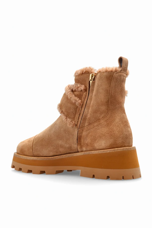 Zamszowe buty Meena to kwintesencja ponadczasowej elegancji, stworzone z myślą o koneserkach wysublimowanego stylu i komfortu. Precyzyjnie wykonane z wysokogatunkowej skóry zamszowej w odcieniu szlachetnego brązu, przyciągają uwagę subtelną fakturą oraz przykuwającym wzrok, puszystym kożuchem obszywającym górę cholewki i pasek.