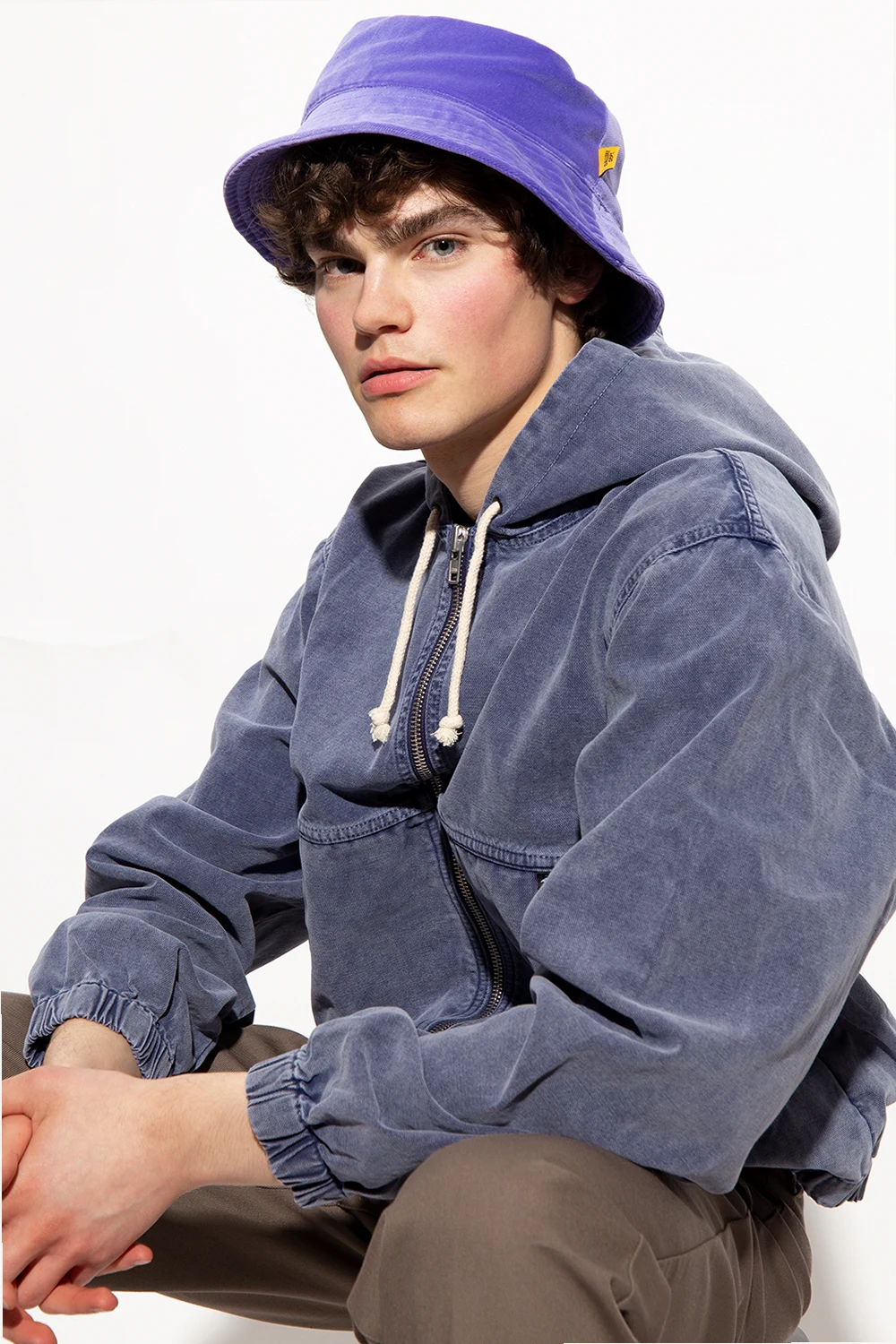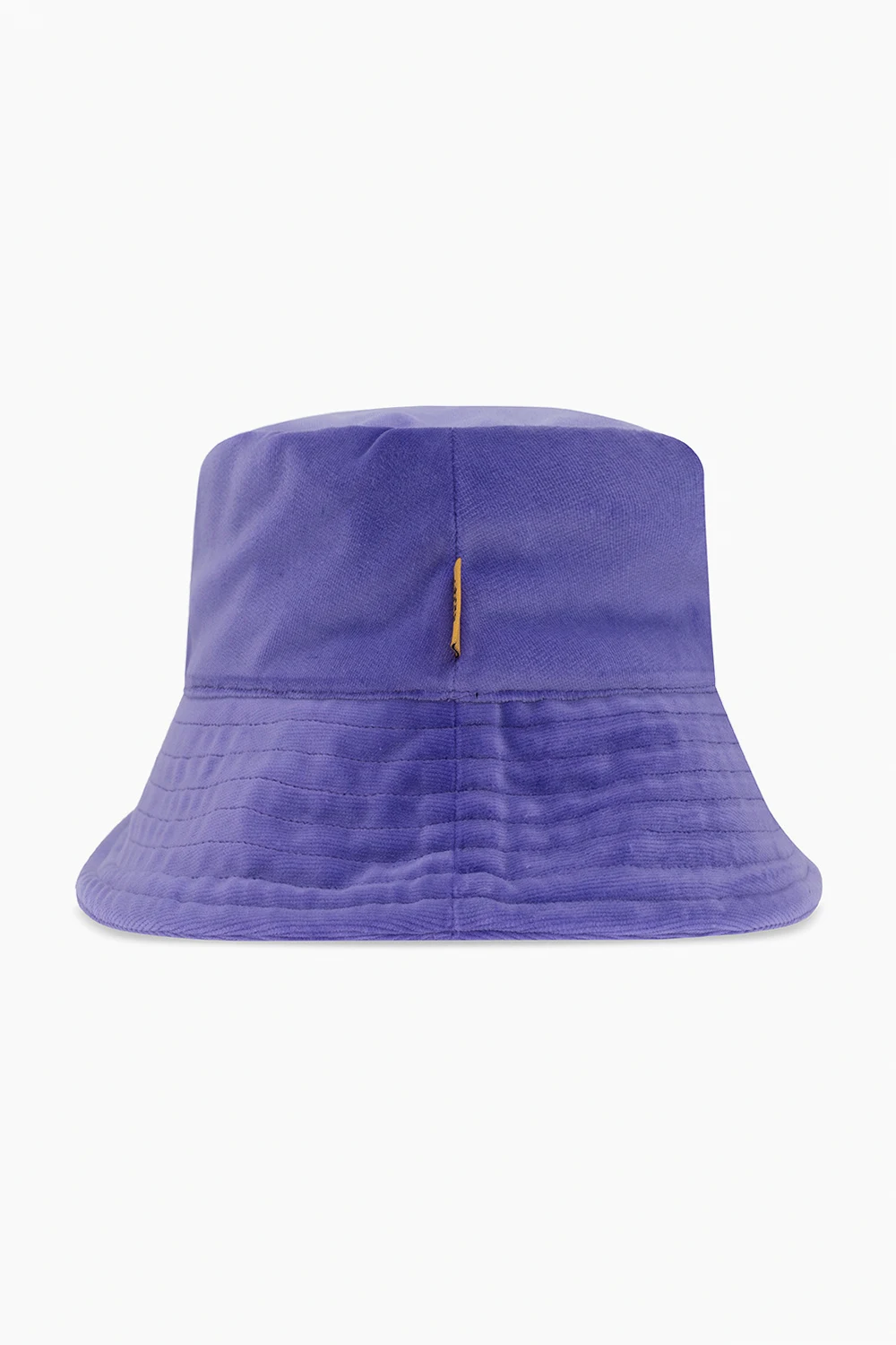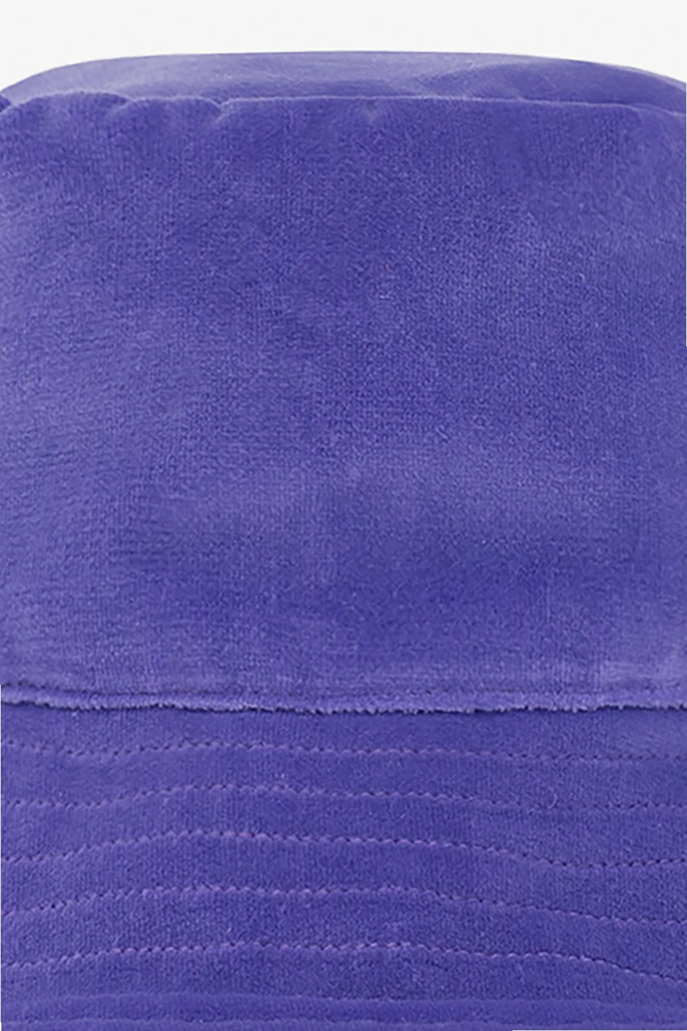 Fioletowy kapelusz GALLERY DEPT. Wykonany z aksamitu. Ozdobiony żółtą naszywką z logo.
