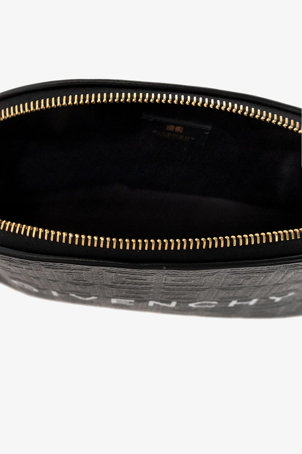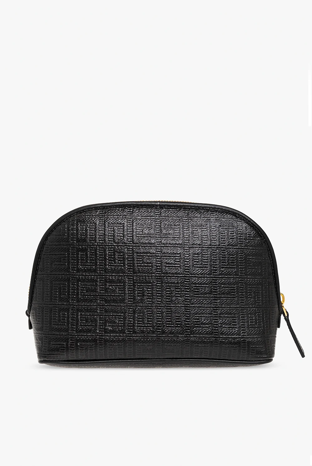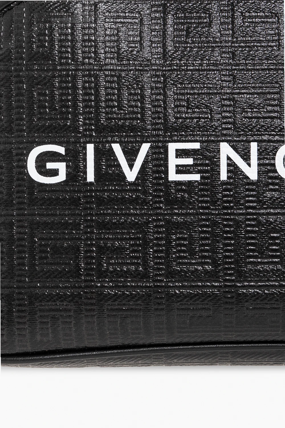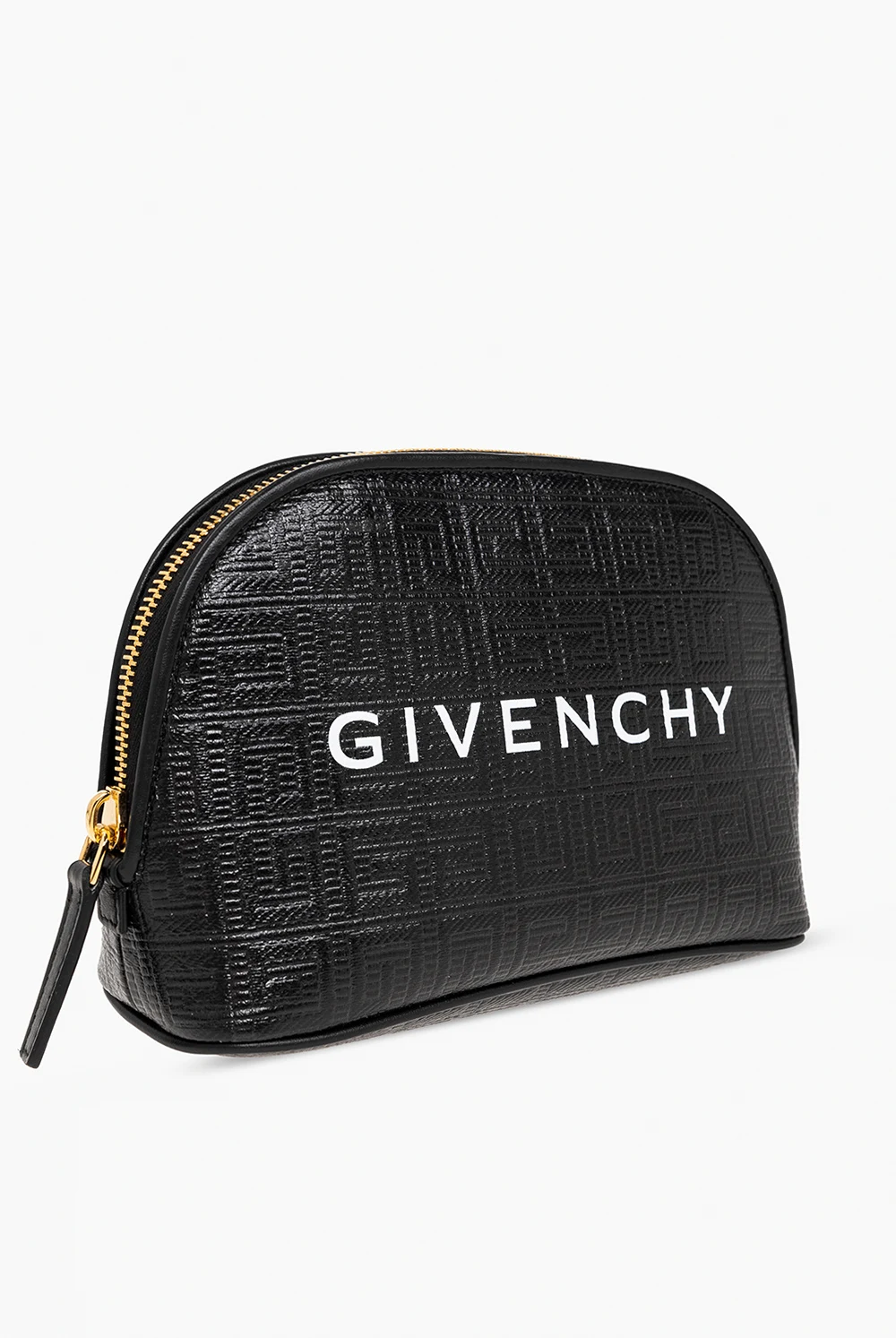 Czarna kosmetyczka Givenchy. Wykonana z materiału imitującego skórę. Ozdobiona wytłoczonym monogramem 'G-Essentials'. Z przodu nadruk z logo w kolorze białym. Wewnątrz jedna komora. Metalowe wykończenie w kolorze złotym.