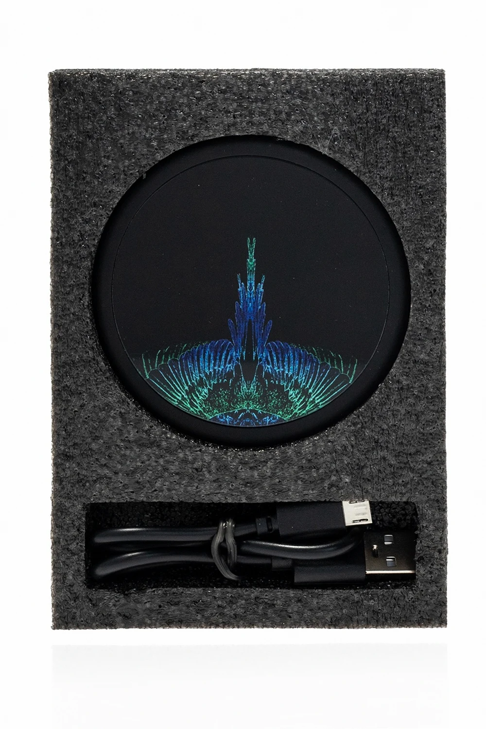 Czarny powerbank Marcelo Burlon. Ozdobiony nadrukowanym wzorem z logo w kolorze zielono-niebieskim.