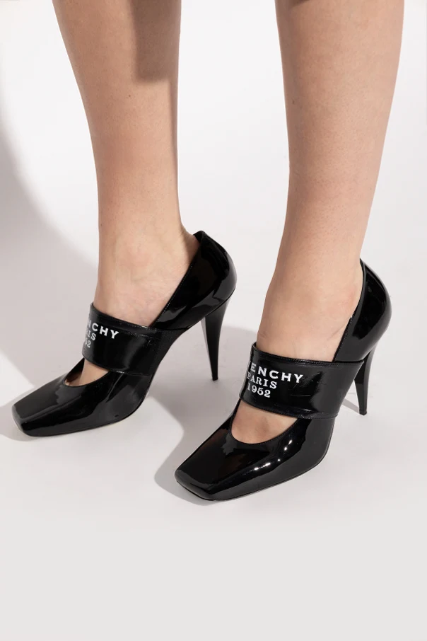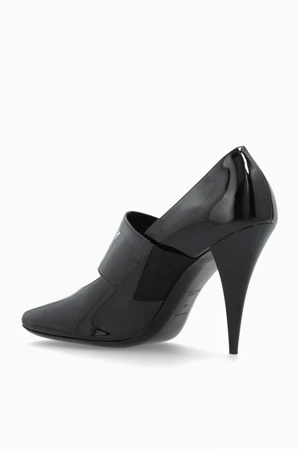 Buty na obcasie „Square” marki Givenchy stanowią kwintesencję nowoczesnego luksusu z arystokratyczną nutą. Wyraźnie kwadratowy nosek podkreśla aktualność linii, harmonijnie współgrając z wysokim, smukłym obcasem o dynamicznym kształcie. Lśniąca, lakierowana skóra cielęca w barwie głębokiej czerni emanuje prestiżem i nieskazitelnością wykonania.