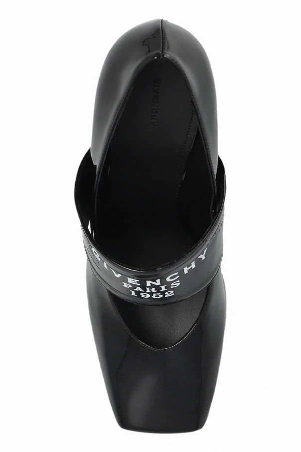 Szeroki pasek z wyrazistym, biały napisem GIVENCHY PARIS 3 AVENUE GEORGE V 75008 nie pozostawia wątpliwości co do ekskluzywnego rodowodu obuwia. Charakterystyczne, delikatnie łukowate wycięcie cholewki subtelnie eksponuje linię stopy, podkreślając jej smukłość oraz oryginalność projektową.