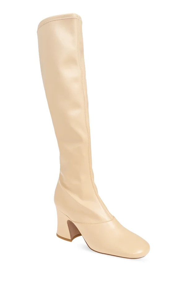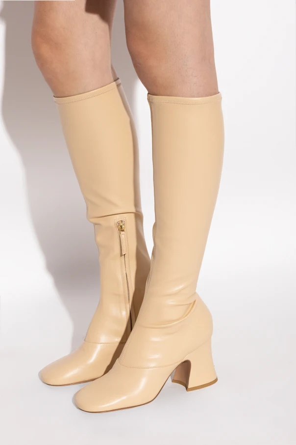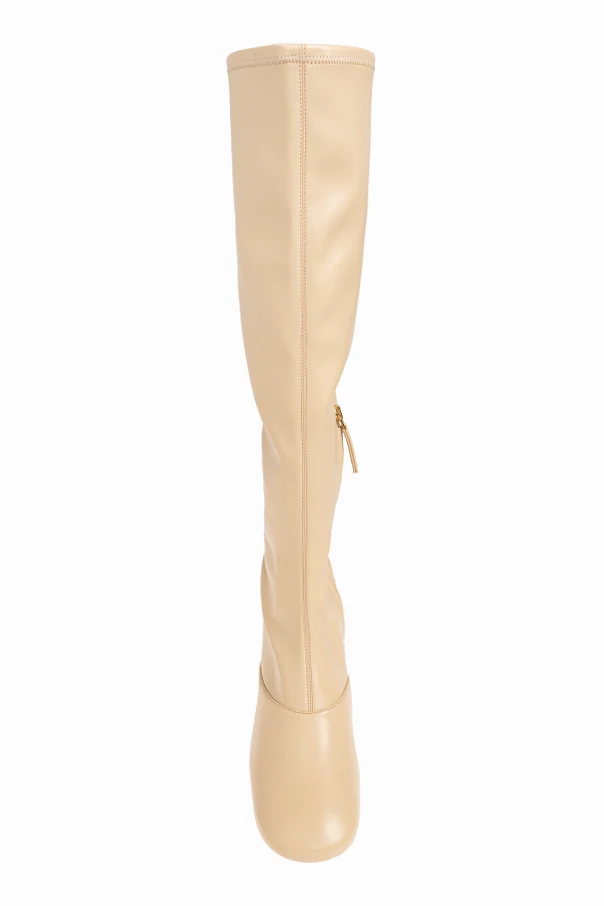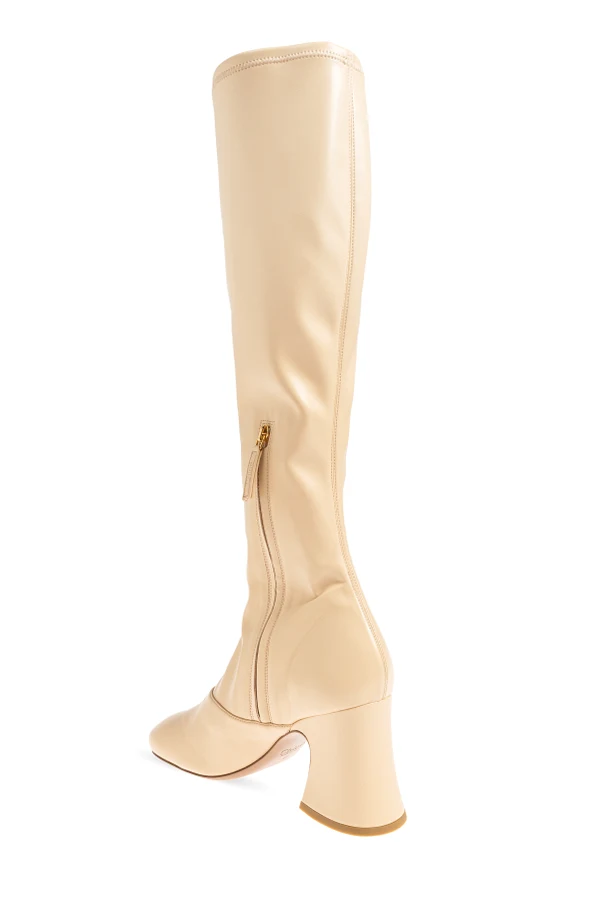 Kozaki ‘Janis’ autorstwa paryskiego domu mody Chloé to synonim wyrafinowania i subtelnego luksusu. Wyróżniają się smukłą linią o długości do kolan, z lekko rozszerzaną, doskonale przylegającą cholewką. Buty wykonano z wysokogatunkowej skóry oraz syntetycznego materiału o satynowym połysku, co podkreśla ich prestiżowy charakter.