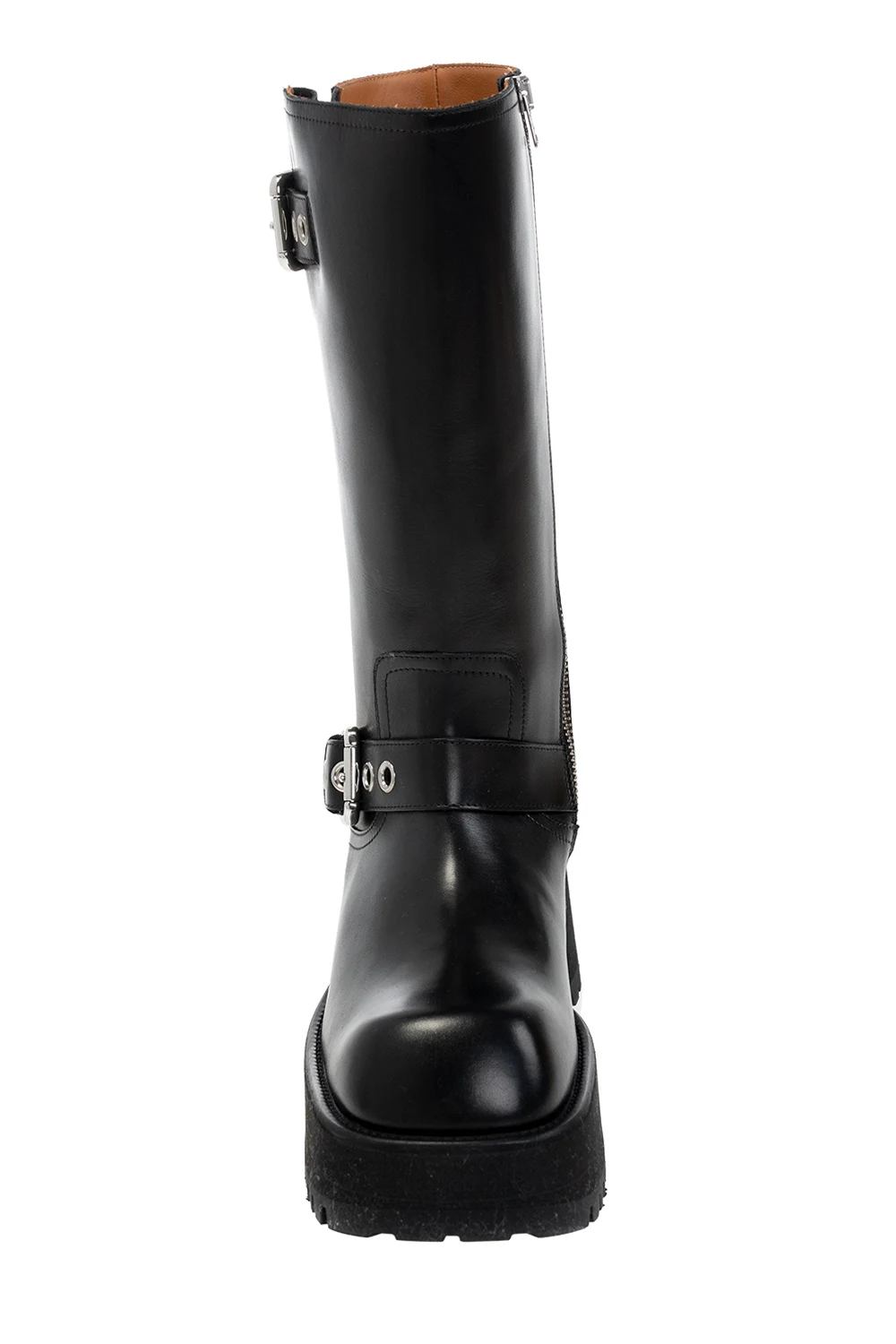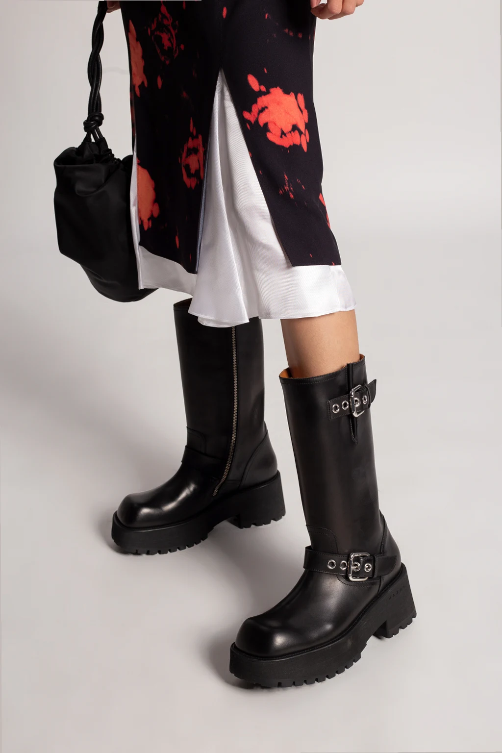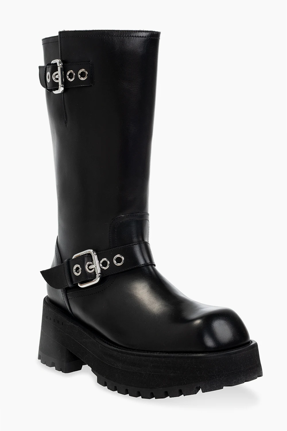 Czarne botki na platformie Marni. Wykonane ze skóry. Zapinane z boku na zamek. Regulowane za pomocą pasków z klamrą w kolorze srebrnym z wytłoczonym logo. Czarna, gumowa podeszwa.