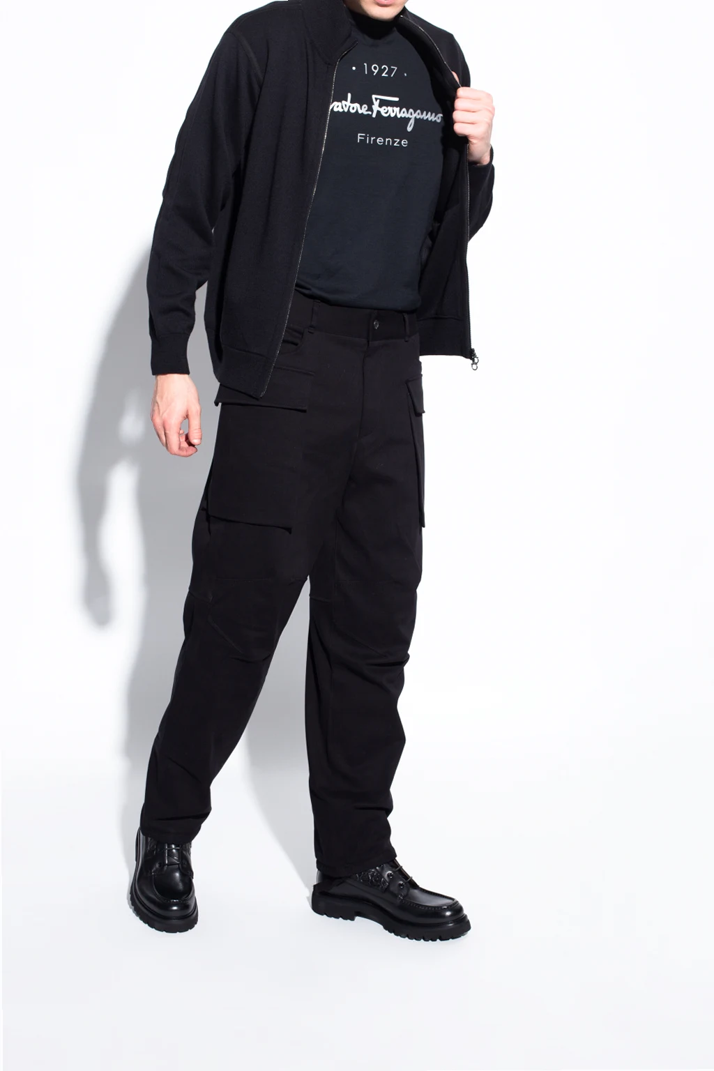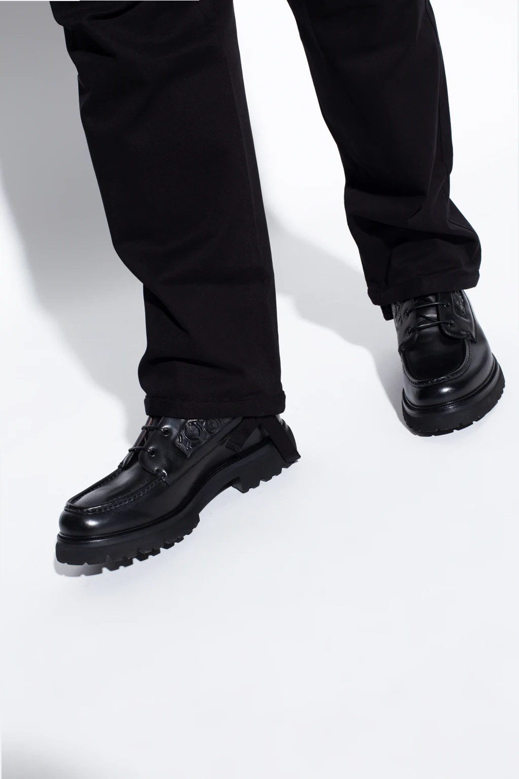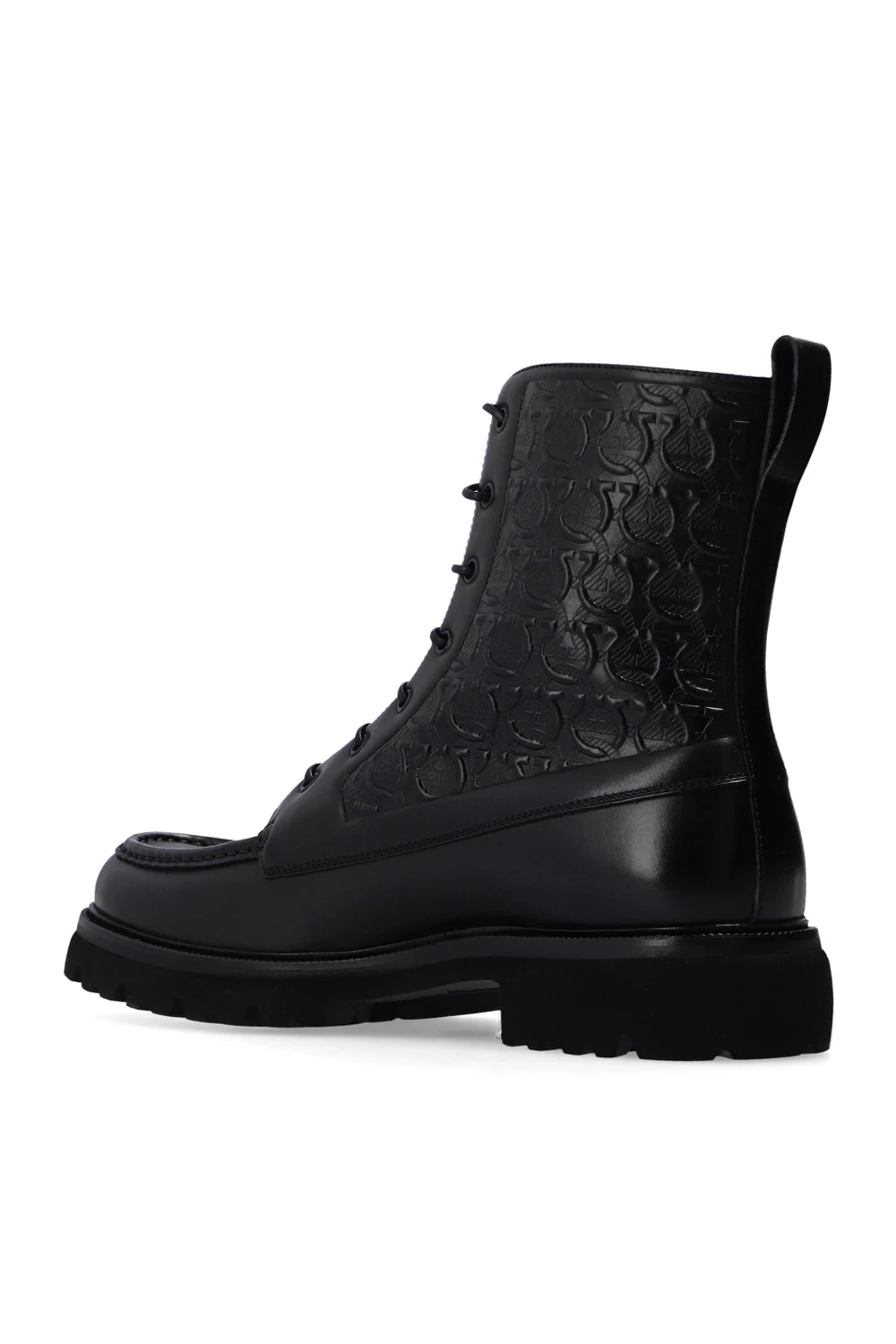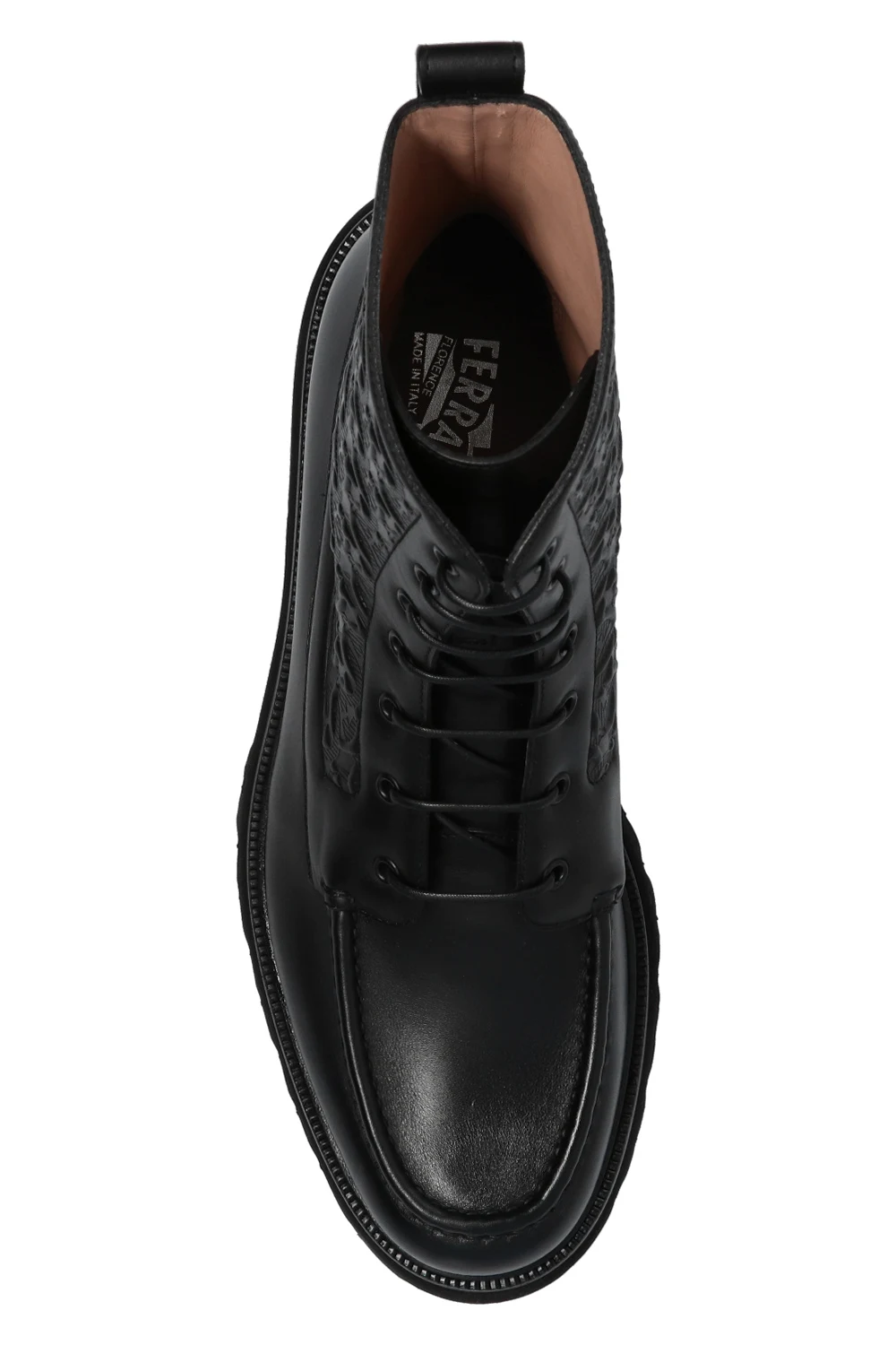 Czarne, skórzane, sznurowane buty za kostkę, model ‘Naval 2’ Salvatore Ferragamo. Ozdobione wytłoczonym logo. Czarna, gumowa podeszwa.