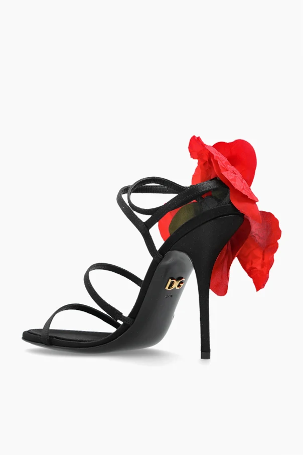 Sandały na obcasie z aplikacją marki Dolce & Gabbana to esencja włoskiej wytworności, uosabiająca wyrafinowaną estetykę domu mody o światowej renomie. Model o klasycznej, subtelnej sylwetce wyróżnia się smukłą, wysoką szpilką oraz finezyjnie ukształtowaną, smukłą podeszwą o delikatnie zaokrąglonych liniach.
