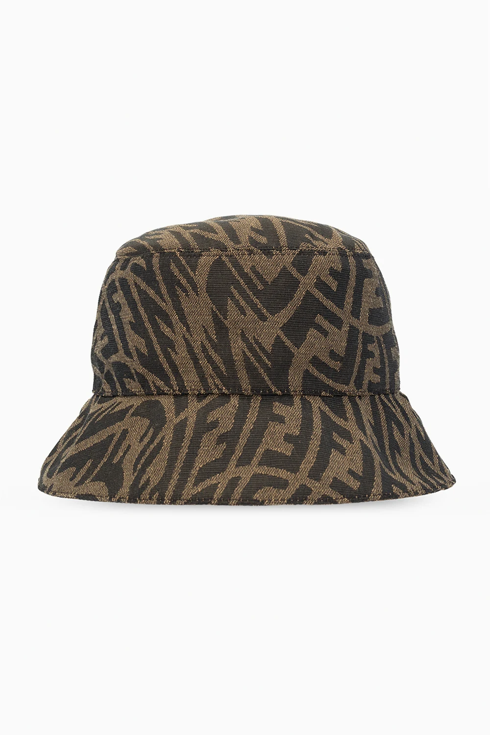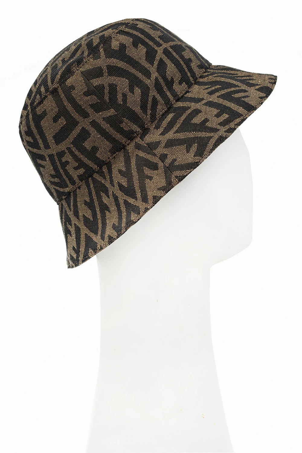 Brązowo-beżowy kapelusz Fendi Kids. Ozdobiony wyszytym logo.