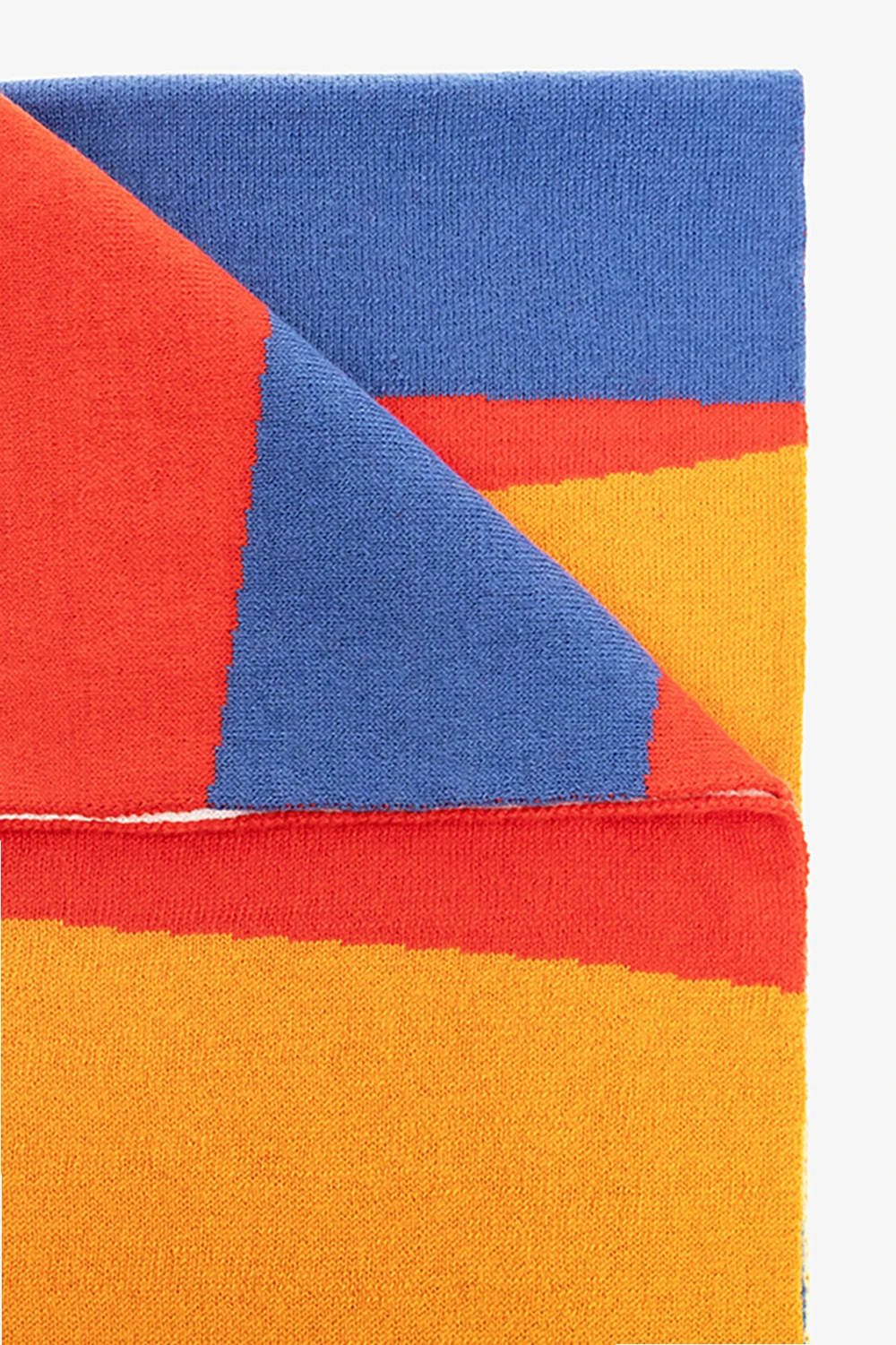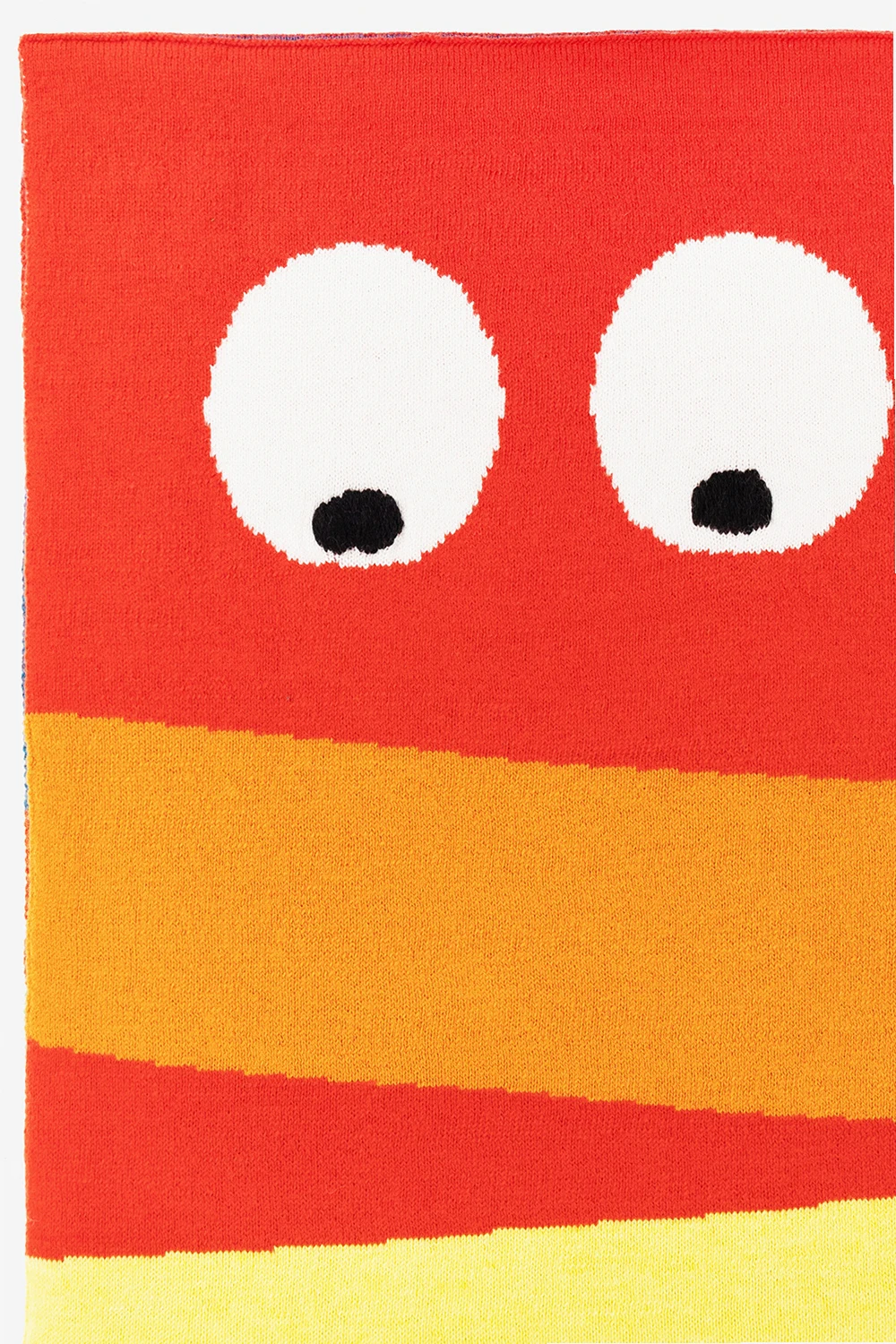 Kolorowy szal Stella McCartney Kids. Wykonany z bawełny organicznej i wełny. Ozdobiony wzorem w paski i wyszytymi oczami.
