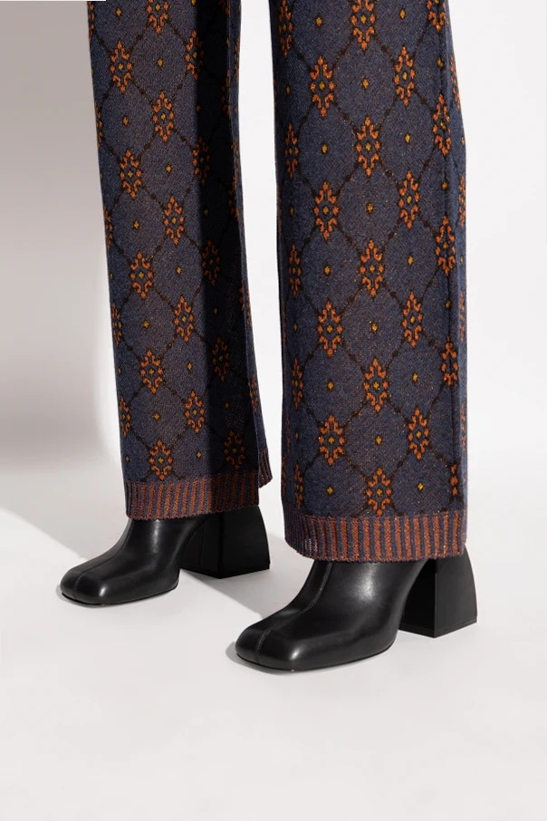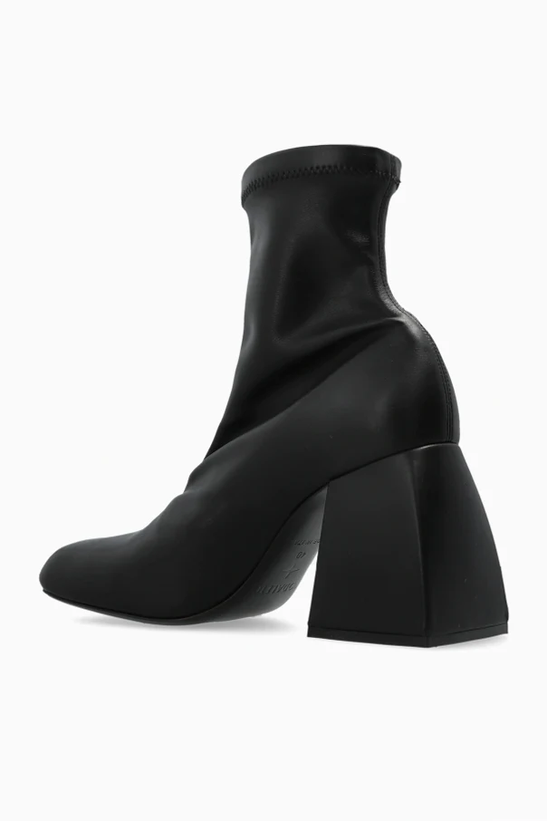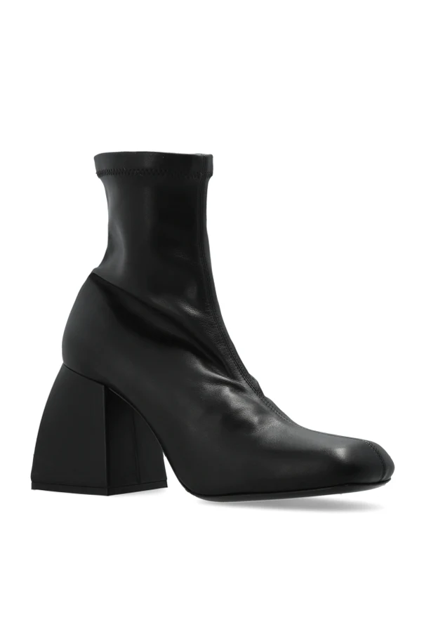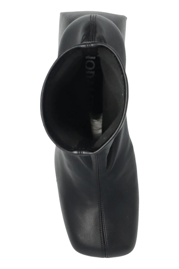 Imponujący słupek, inspirowany geometryczną bryłą, z lekko trapezowym profilem łączy styl z komfortem użytkowania. Kwadratowo-zaokrąglony nosek dopełnia całości luksusowego wzornictwa. Brak widocznych szwów i ozdób przekłada się na współczesną, minimalistyczną estetykę. Wnętrze botków wyściełano miękką skórą oraz tkaniną, natomiast podeszwa łączy walory gumy z elegancją skóry, zapewniając stabilność i wygodę przez cały dzień.