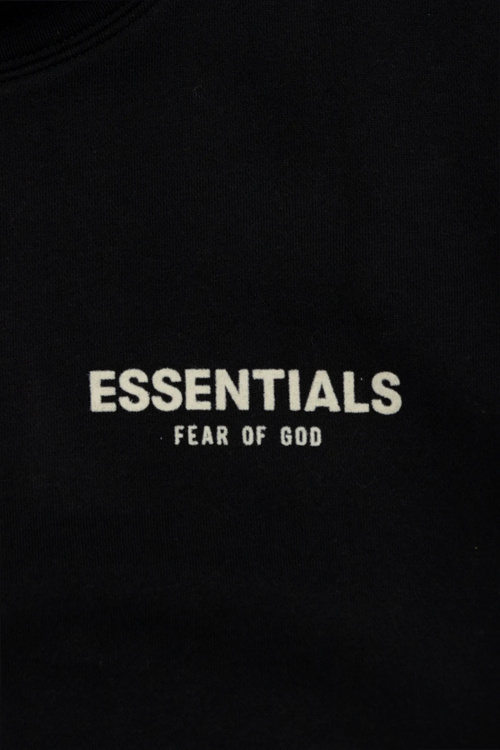 Czarna bluza Fear Of God Essentials Kids. Wykonana z bawełny. Ozdobiona białym wzorem z logo w kolorze białym. Dól i długie rękawy wykończone ściągaczem.