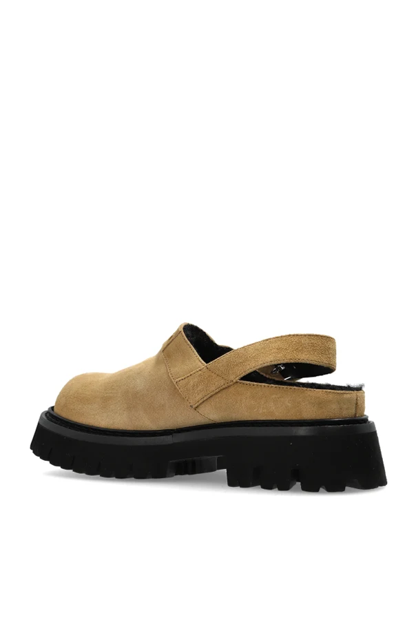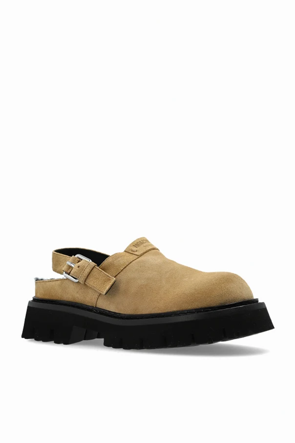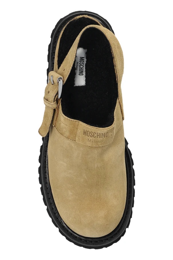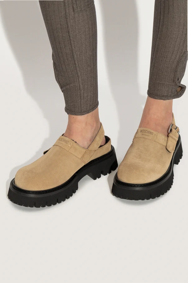 Zamszowe buty na platformie marki Moschino to niezwykłe połączenie współczesnej elegancji i miejskiej odwagi. Wysmakowany beżowy zamsz, z którego wykonano wierzchnią warstwę, zachwyca miękkością oraz subtelną fakturą, podkreślając ekskluzywny charakter obuwia. Zamknięty przód i lekko zaokrąglony nosek dopełniają wyrafinowaną sylwetkę, nadając całości harmonijną formę. Mocno zabudowana góra została uzupełniona o tylny pasek ze sprzączką, nawiązujący do szlachetnych sandałów typu slingback.
