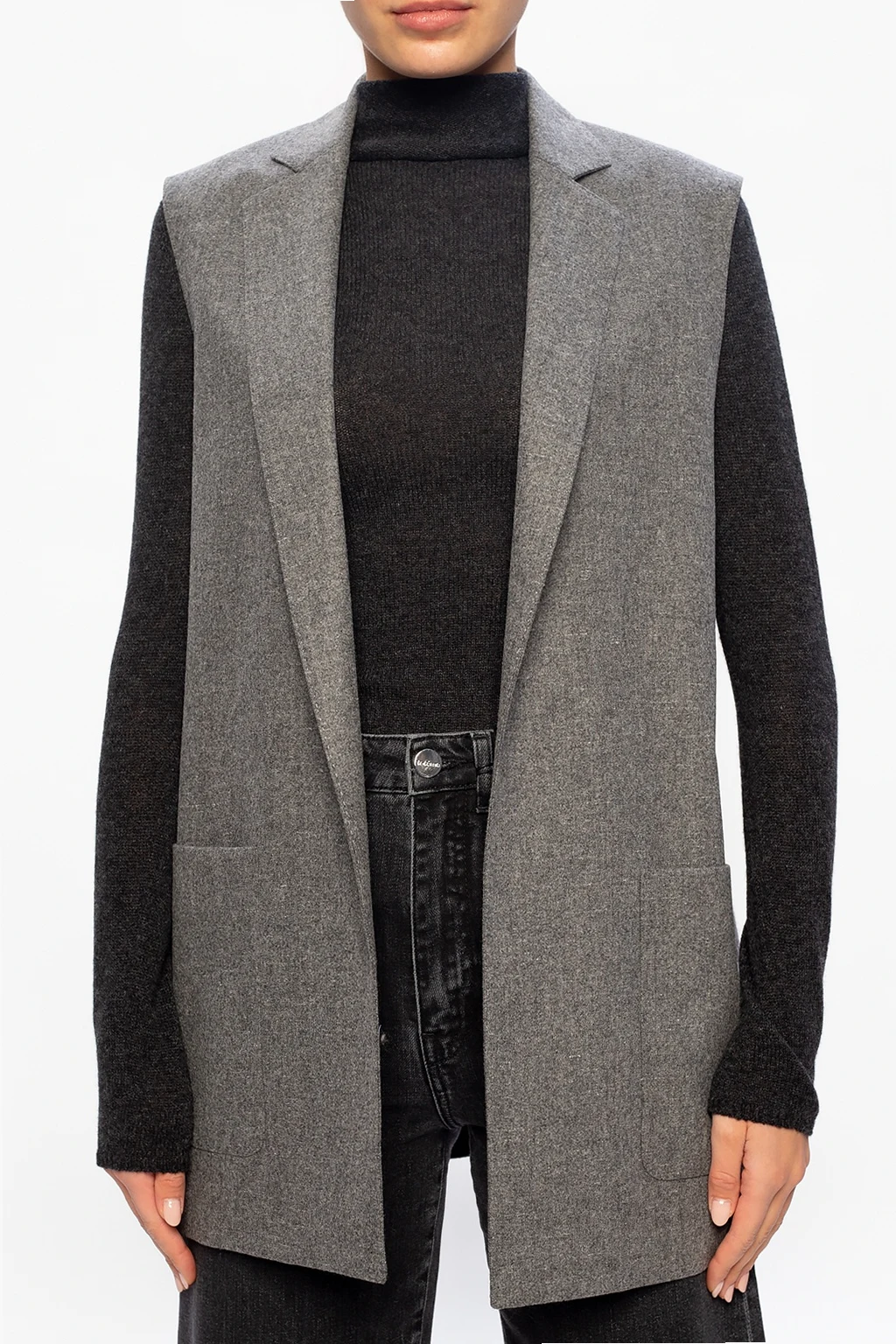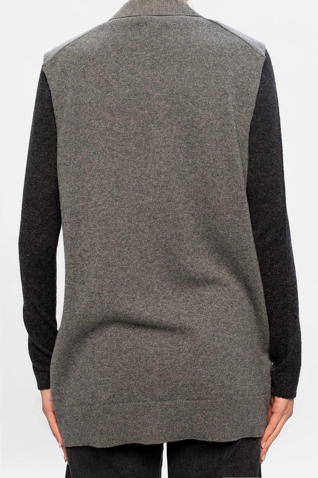 Szara kamizelka Agnona. Wykonana z moheru. Wykończona wełną. Dwie wsuwane kieszenie.