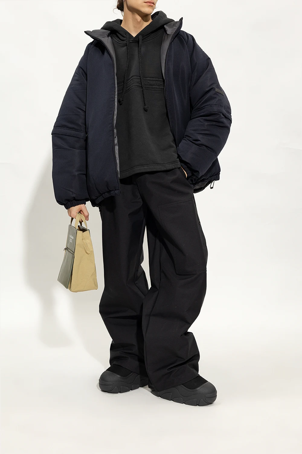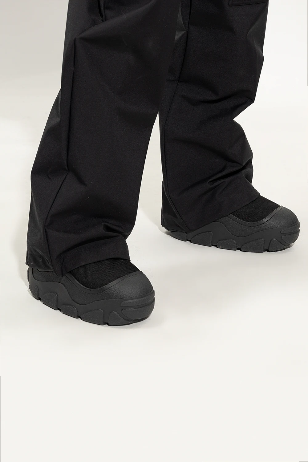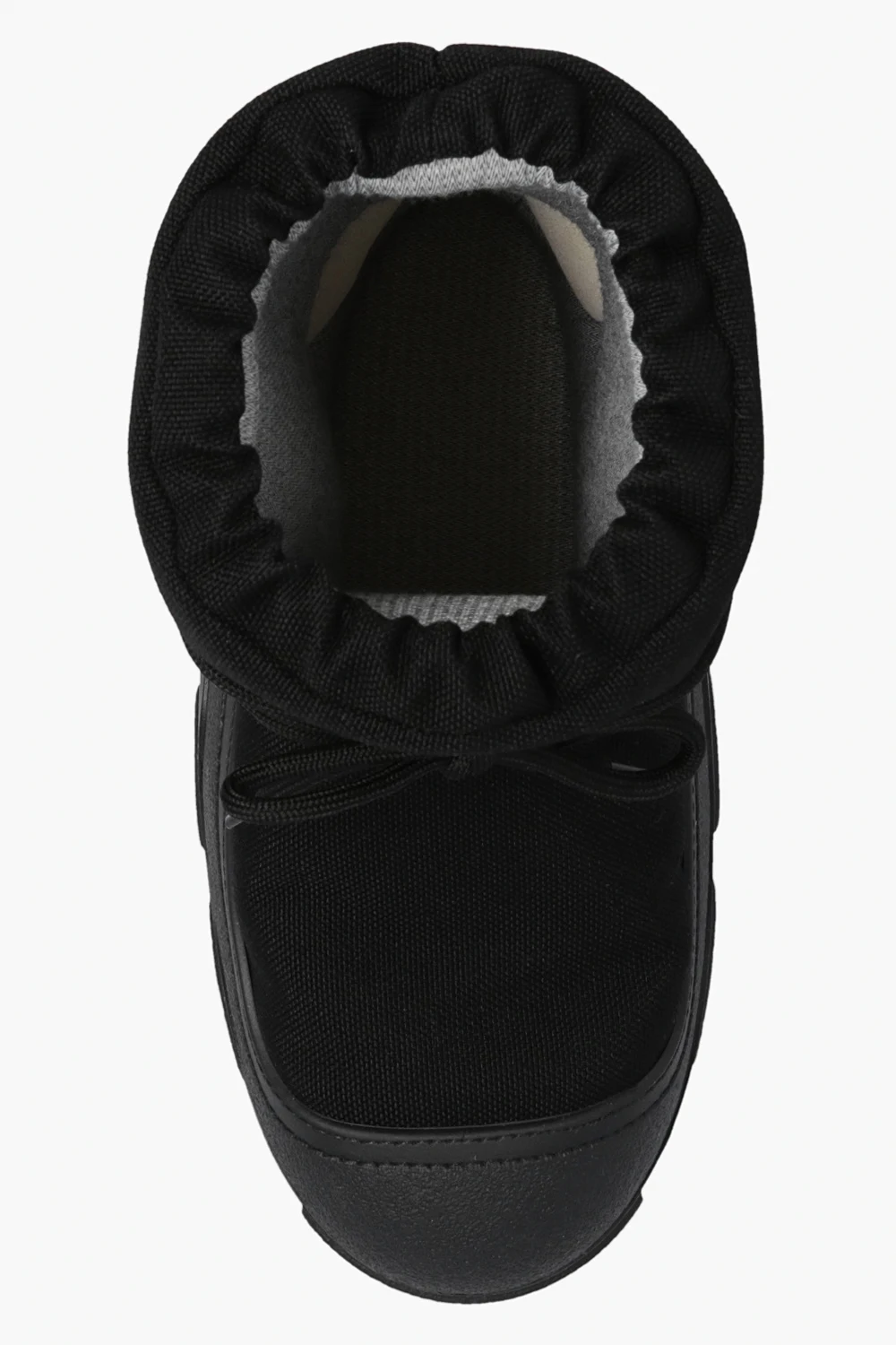 Czarne, sznurowane śniegowce Acne Studios. Ozdobione naszywką z logo. Czarna, gumowa podeszwa.
