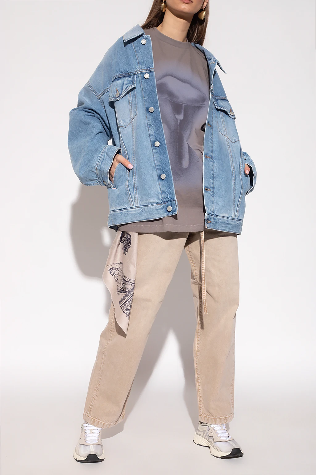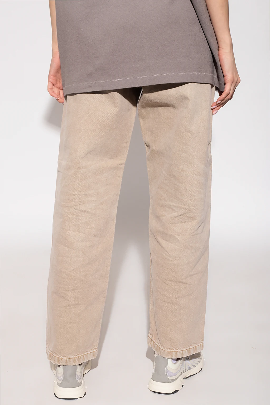 Beżowe jeansy , model 'Acne Stuidios 1991' Acne Studios. Wykonane z bawełny. Zapinane na guziki. Z tyłu beżowa naszywka z wytłoczonym logo. Pięć wsuwanych kieszeni. Długie nogawki o luźnym kroju.