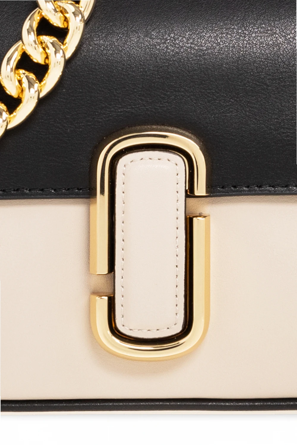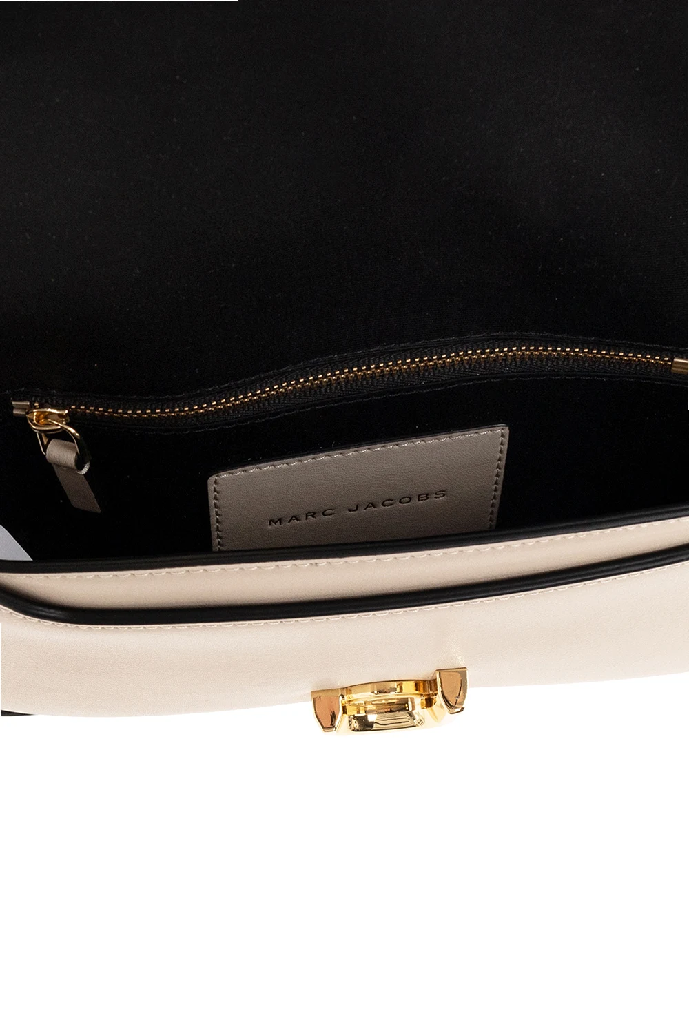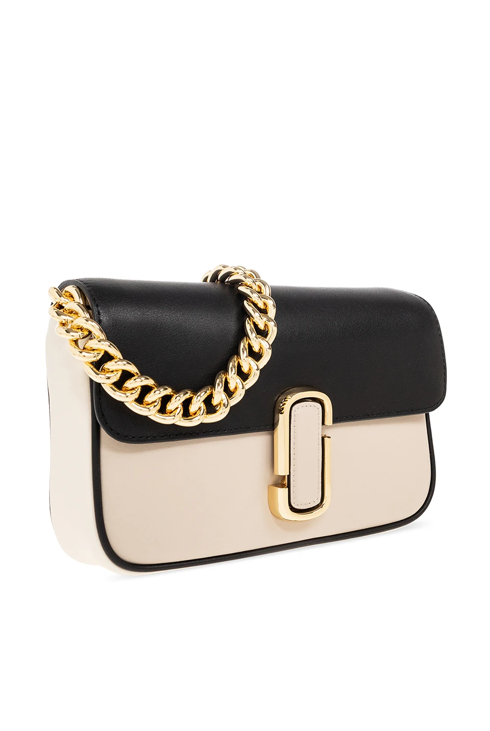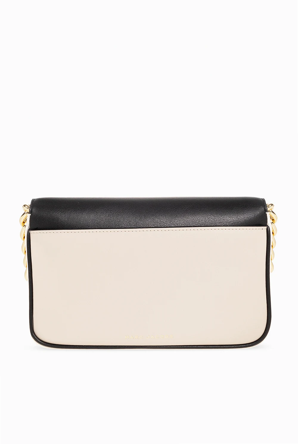 Czarno-beżowo-kremowa torba na ramię, model 'The J Marc'Marc Jacobs. Wykonana ze skóry. Zamykana na magnetyczny zatrzask. Z przodu aplikacja w kształcie logo. Z tyłu wsuwana kieszeń. Odpinany, regulowany, czarno-beżowo-szary pasek. Odpinany, krótki łańcuch. Wewnątrz komora, kieszeń zamykana na zamek i wsuwana kieszeń. Metalowe elementy w kolorze złotym.