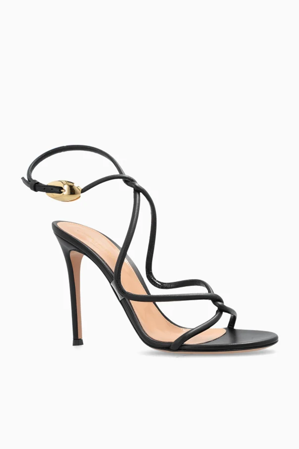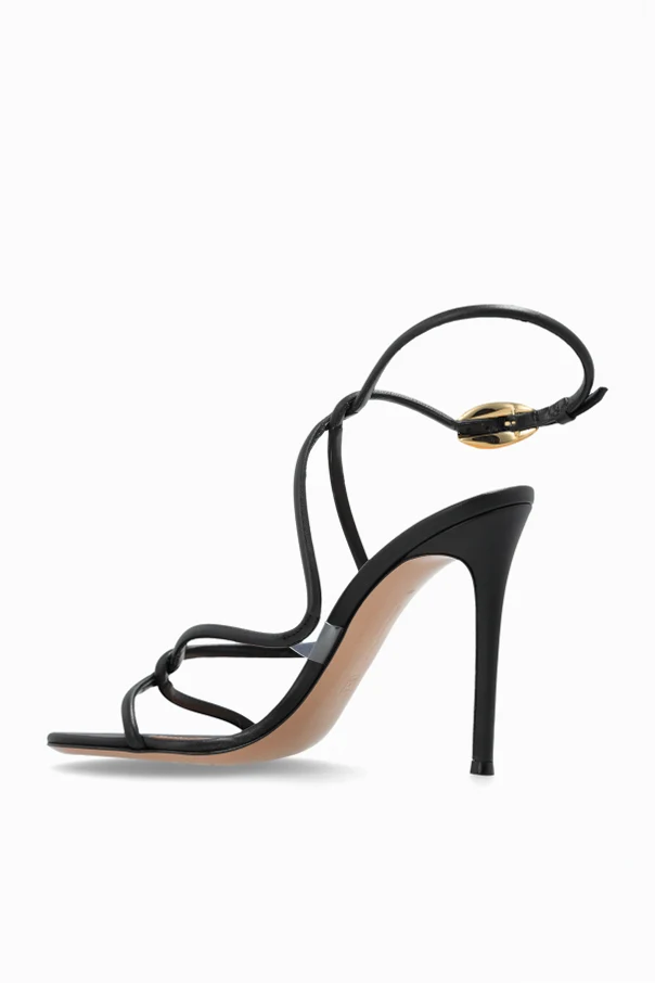 Sandały na obcasie Mamba autorstwa Gianvito Rossi to kwintesencja wyrafinowanego stylu. Ich smukła linia oraz wysmuklająca sylwetkę, cienka szpilka, tworzą niepowtarzalny efekt lekkości i podkreślają ekskluzywny charakter. Dominujący kolor BLACK nadaje obuwiu ponadczasowej klasy, a nieregularnie poprowadzone paski, oplatające stopę w oryginalny, asymetryczny sposób, emanują finezją i luksusem.