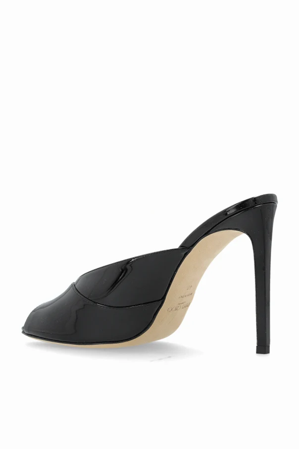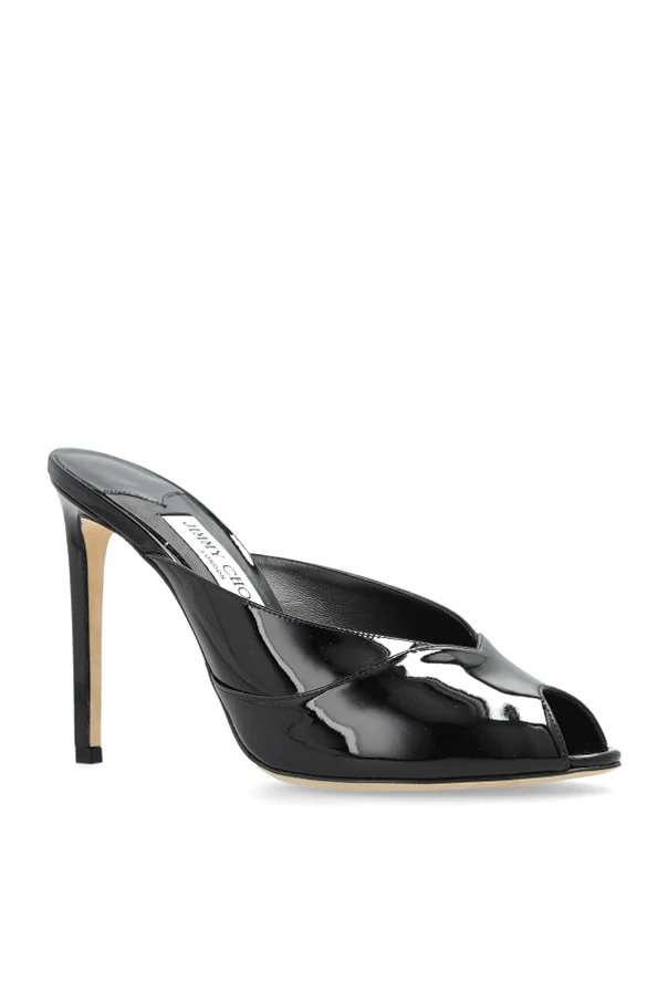 Wysoki, smukły obcas typu stiletto wydłuża sylwetkę i zapewnia niepowtarzalną grację, a stabilna konstrukcja gwarantuje komfort noszenia. Lśniąca, czarna skóra lakierowana przyciąga spojrzenia śmiałym blaskiem, podkreślając luksusowy charakter produktu. Dyskretną sygnaturą jest biała wszywka wewnątrz buta z wyrazistym napisem „JIMMY CHOO LONDON”.