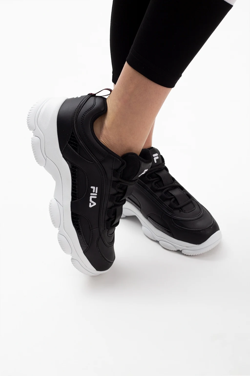 Czarne, sznurowane buty sportowe, model ‘Strada Dreamster’ Fila. Wyszyte logo w kolorze białym. Biała, gumowa podeszwa.