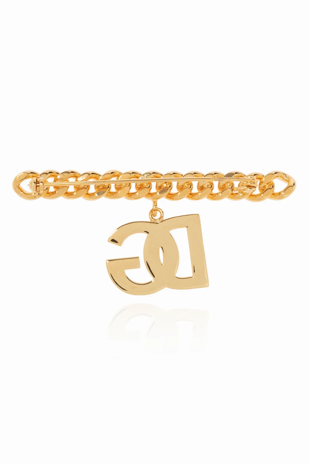 Broszka w kolorze złotym Dolce & Gabbana. Ozdobiona zawieszką w kształcie logo.