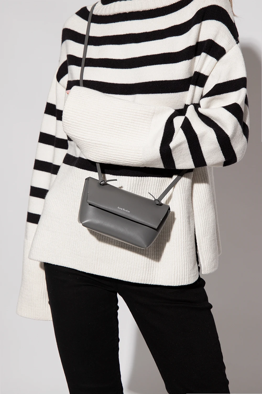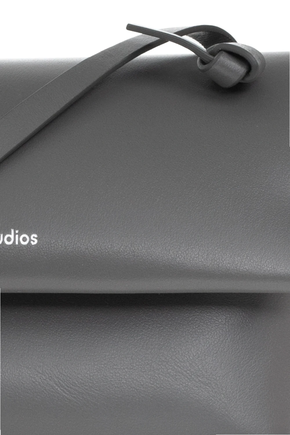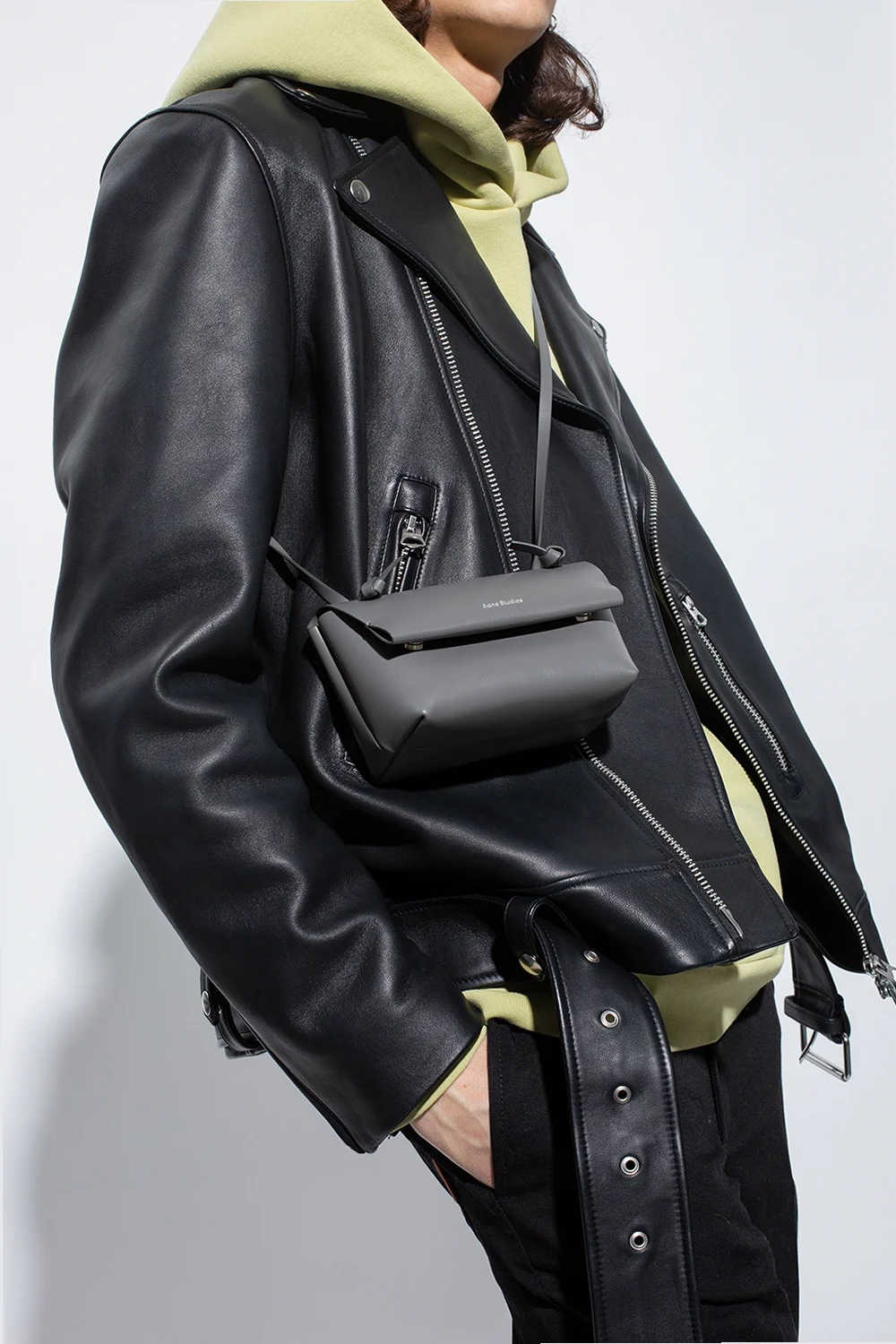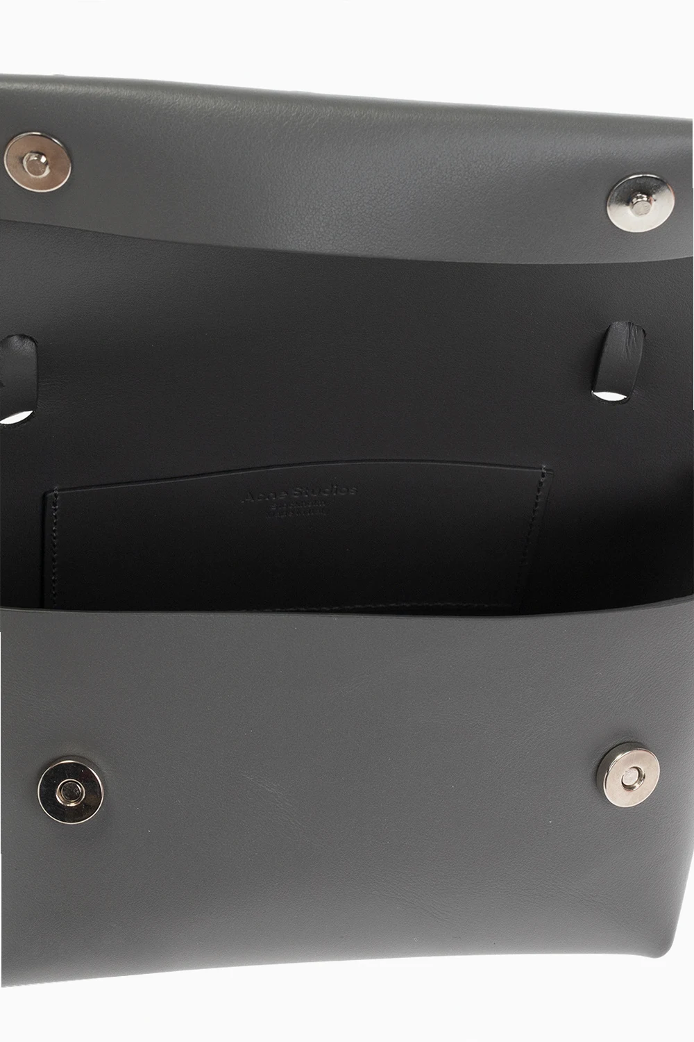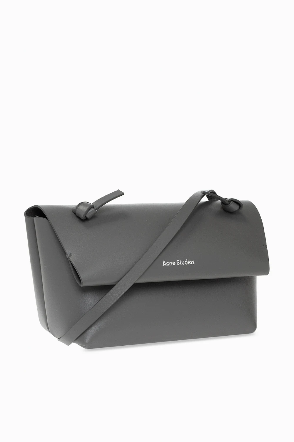Szara torba na ramię Acne Studios. Wykonana ze skóry. Zamykana na magnetyczne zapięcie. Ozdobiona wytłoczonym logo. Pas na ramię. Wewnątrz komora oraz wsuwana kieszeń. Metalowe wykończenie w kolorze srebrnym.