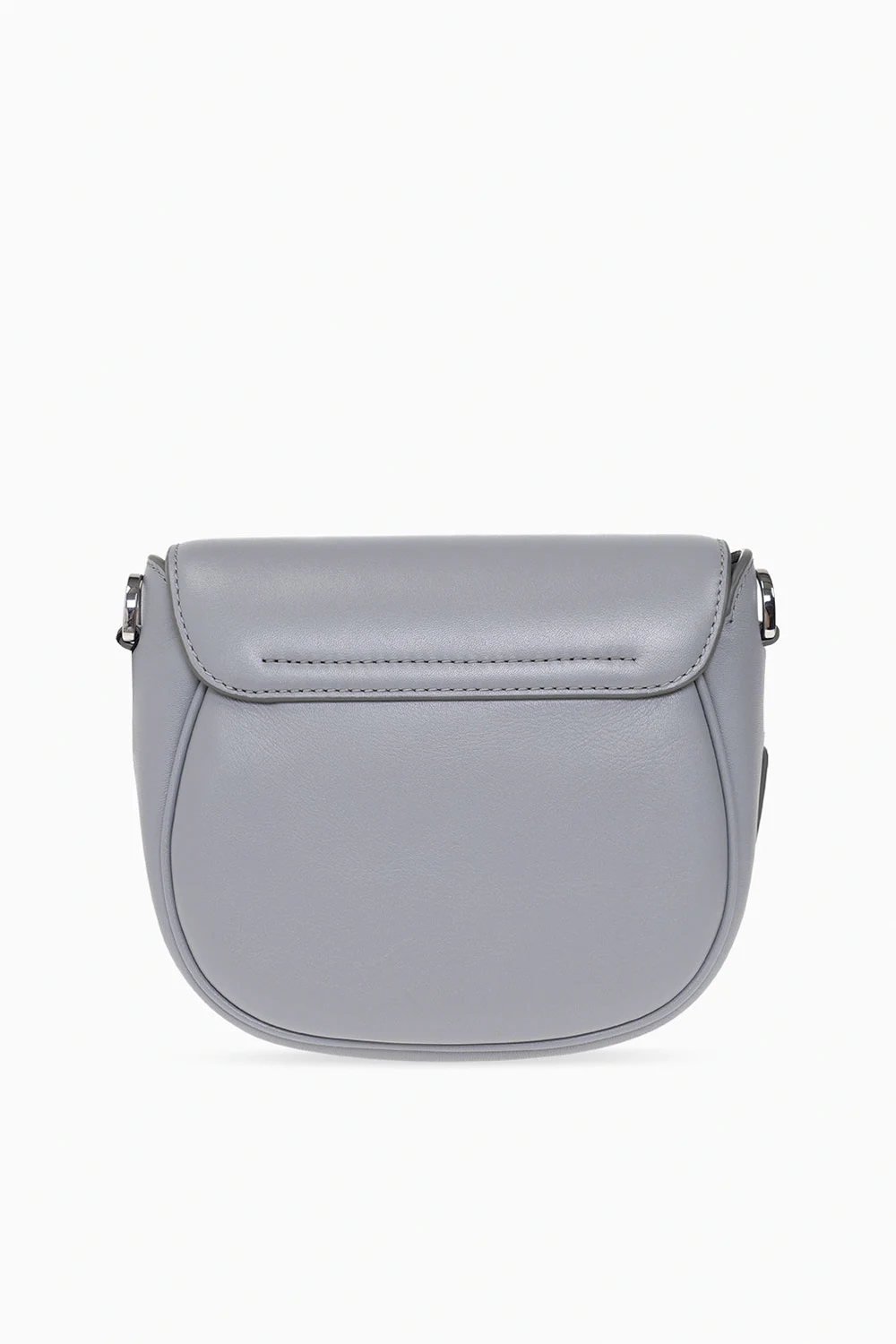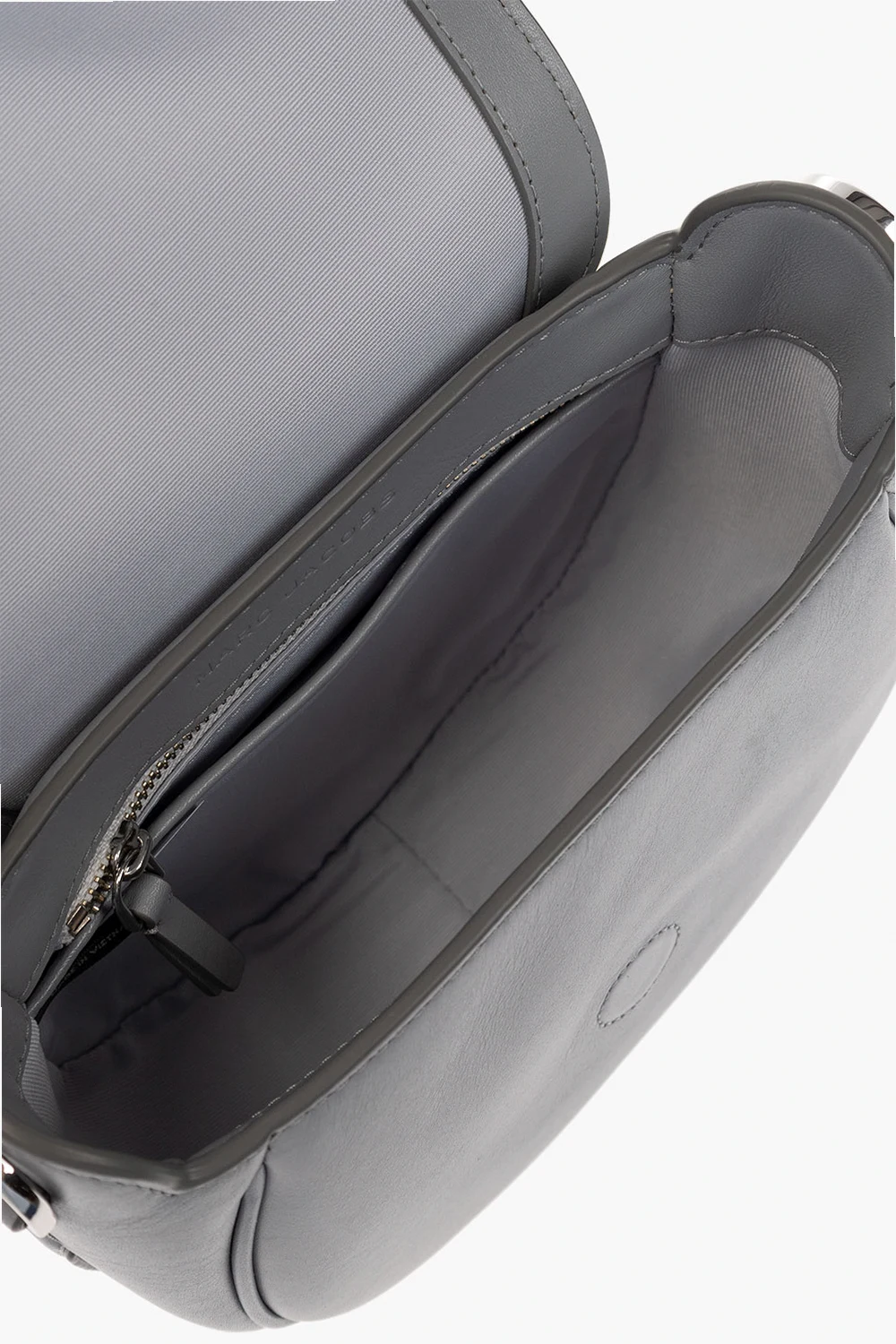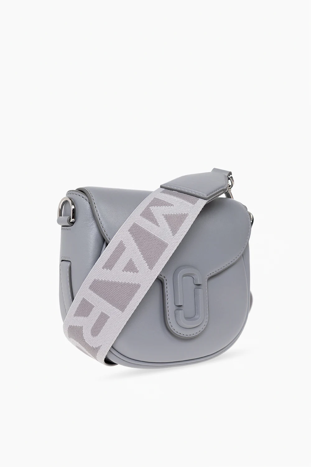 Szara torba na ramię, model 'The J Marc Small’ Marc Jacobs. Wykonana ze skóry. Magnetyczne zamknięcie. Klapa ozdobiona aplikacją w kształcie logo. Regulowany pas na ramię z wyszytym logo. Wewnątrz komora z dwiema kieszeniami: wsuwaną oraz zamykaną na zamek. Metalowe wykończenie w kolorze srebrnym.