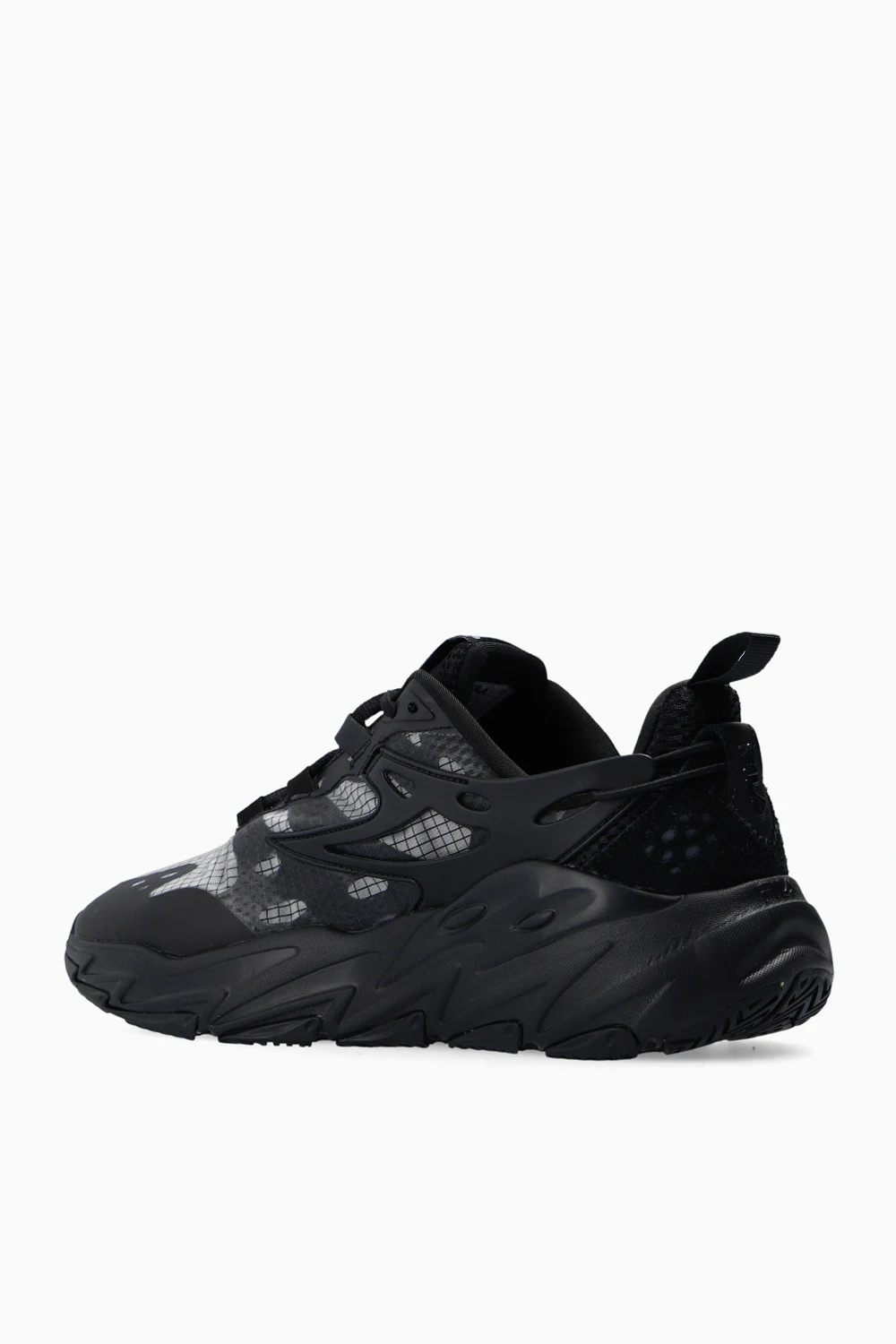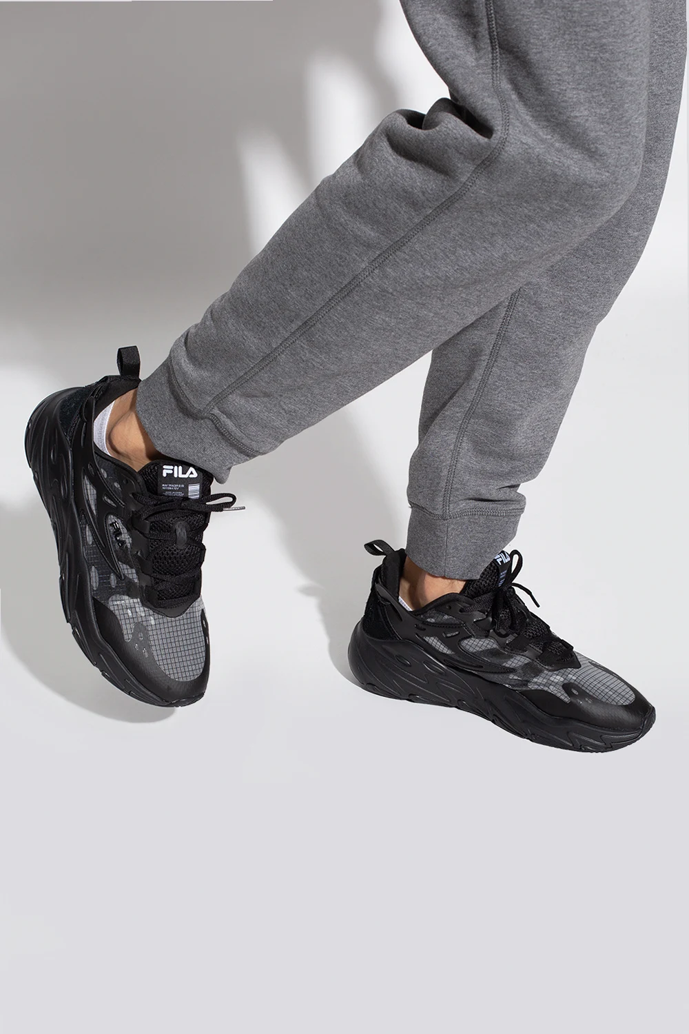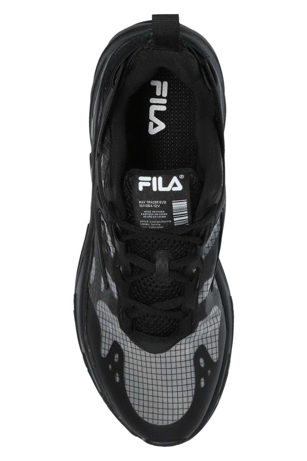 Czarno-szare, sznurowane buty sportowe, model ‘Ray Tracer EVO’ Fila. Na języku naszywka z logo. Czarna, gumowa podeszwa.