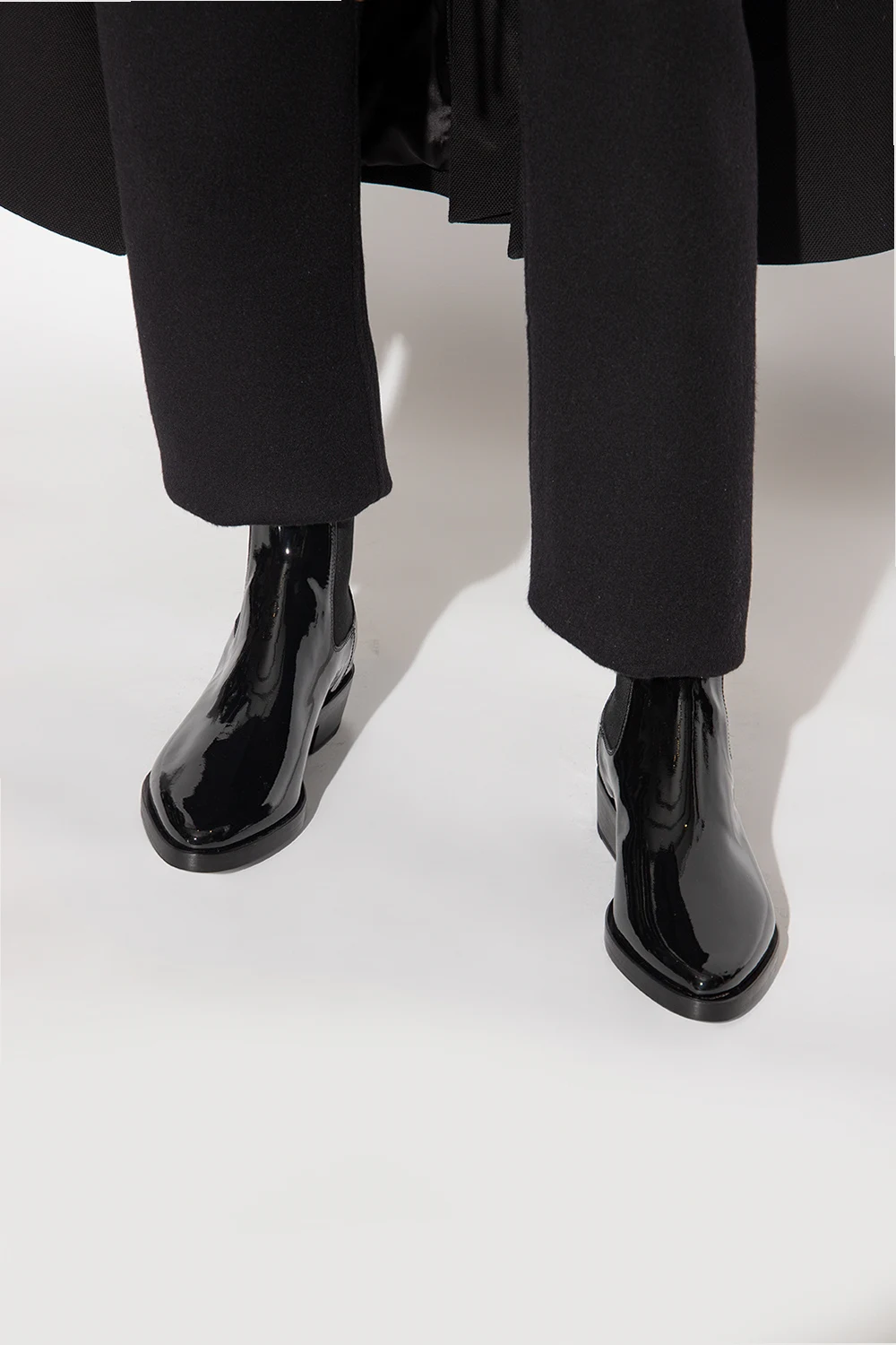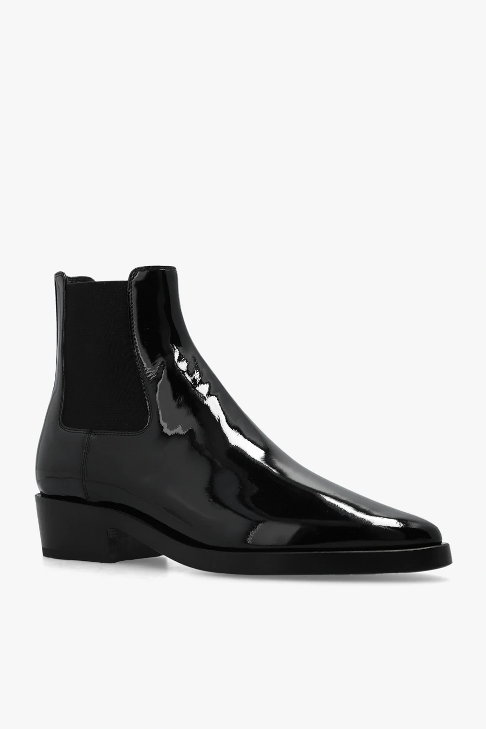 Czarne, wsuwane kowbojki, model ‘Eternal’ Fear Of God. Wykonane z lakierowanej skóry. Po bokach taśma elastyczna. Czarna, drewniana podeszwa.