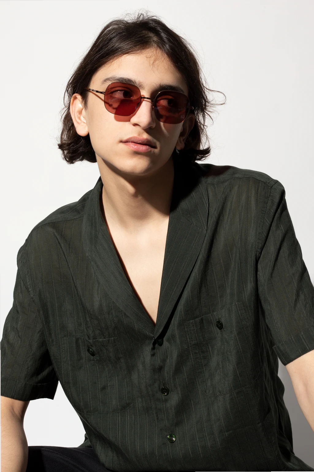 Brązowe okulary przeciwsłoneczne, model ‘Momo’ Mykita. Brązowe, certyfikowane soczewki UVA/UVB. Dołączone czarne etui z logo.