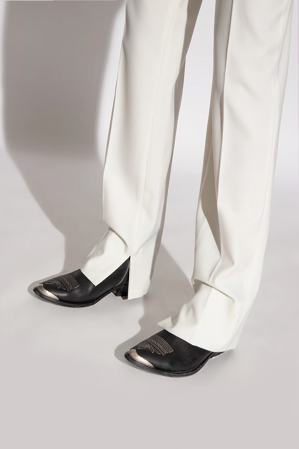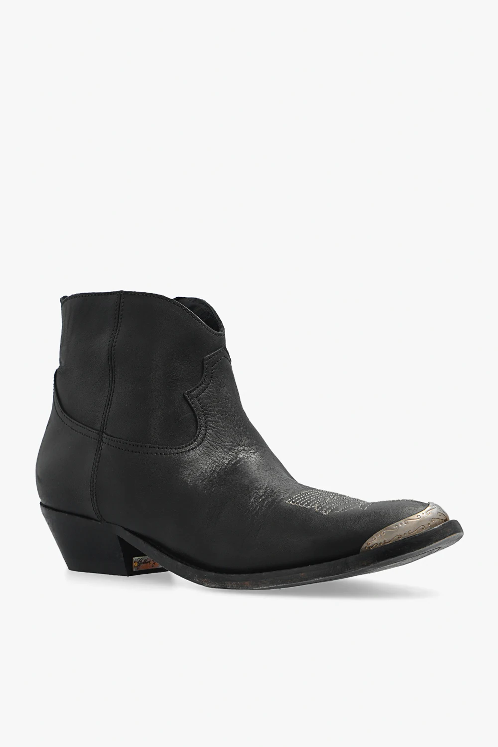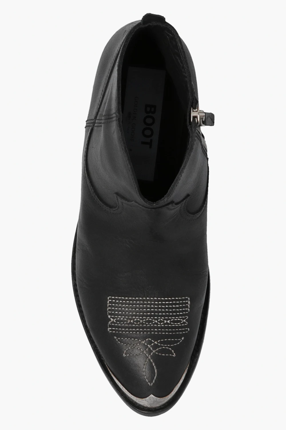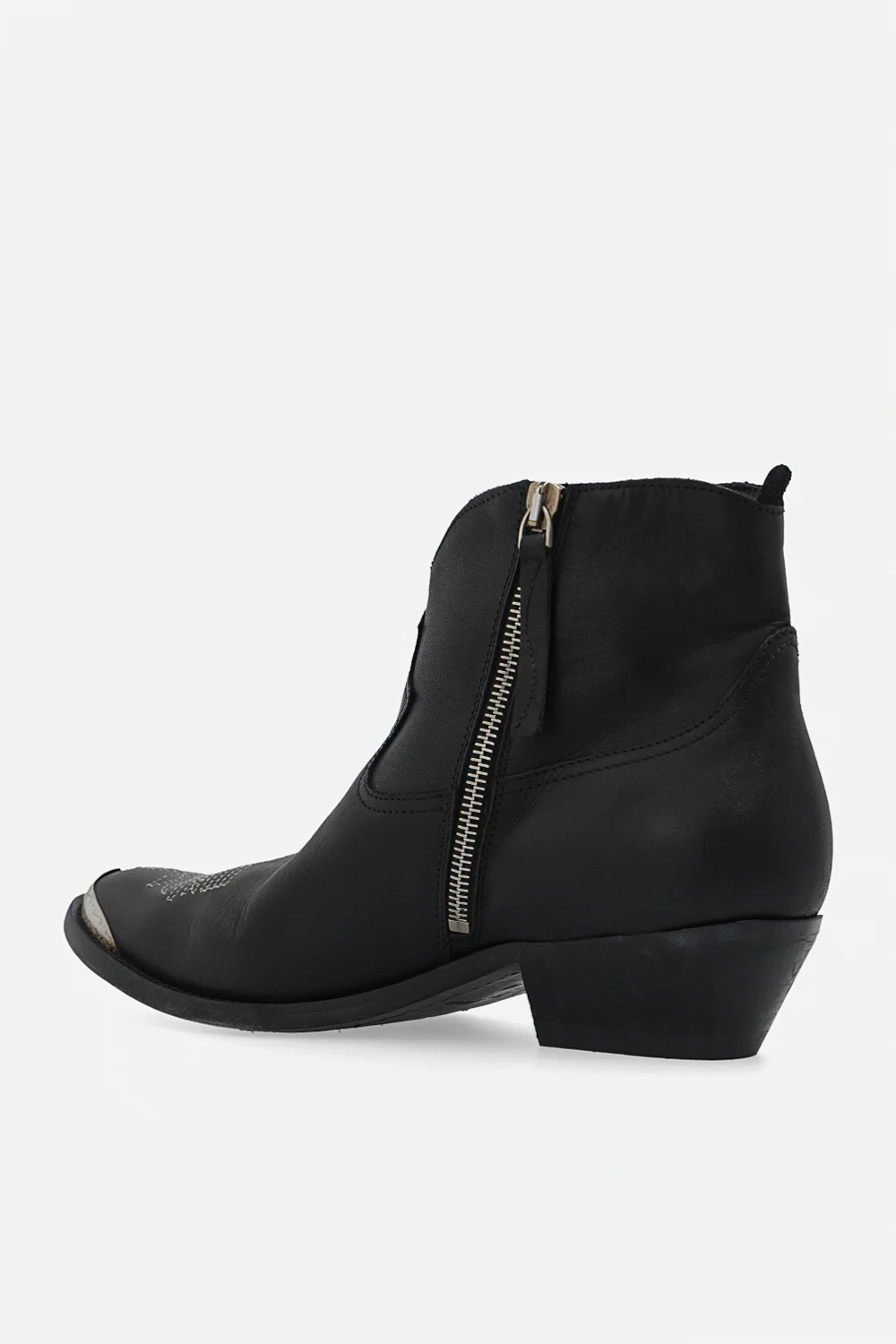 Czarne, krótkie botki, model ‘Young’ Golden Goose. Wykonane ze skóry. Z boku zapinane na zamek. Dekoracyjne przeszycia. Czarna, skórzana podeszwa.