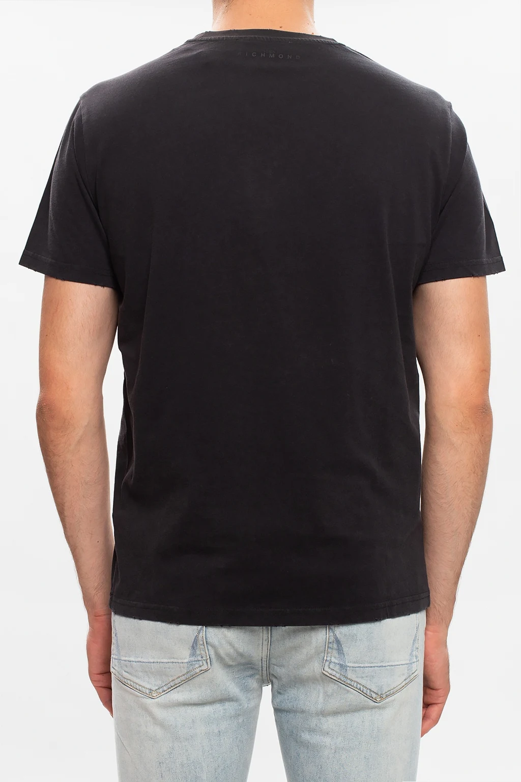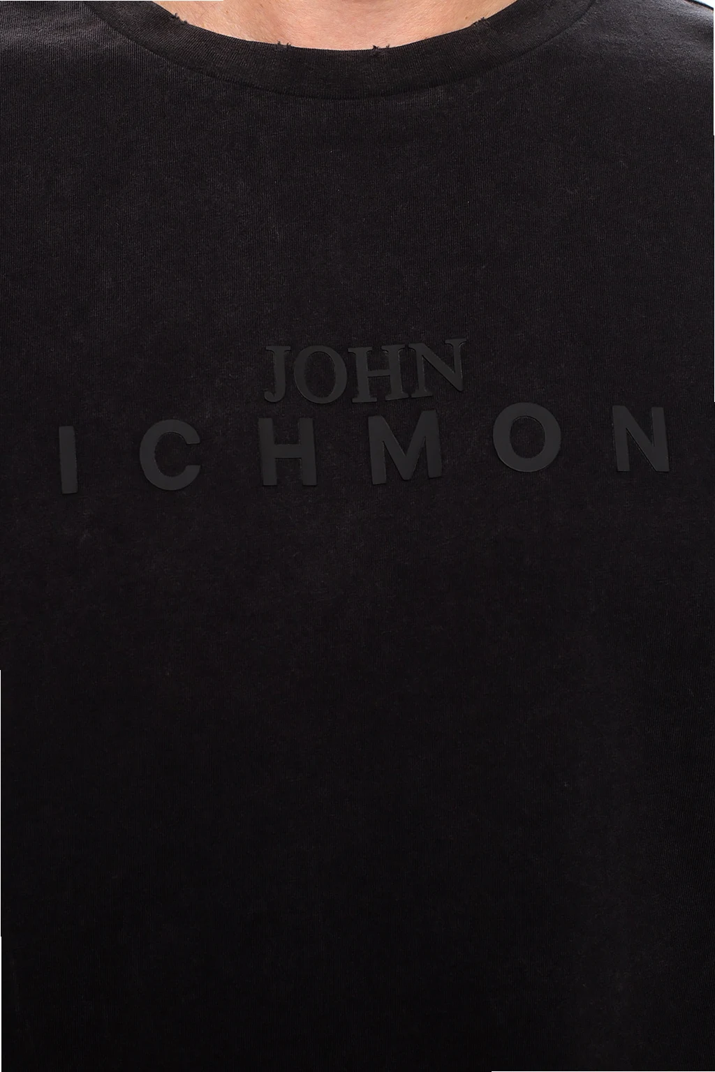 Ciemnoszary t-shirt John Richmond. Wykonany z bawełny. Gumowa aplikacja z logo. Okrągły dekolt. Efekt znoszenia.