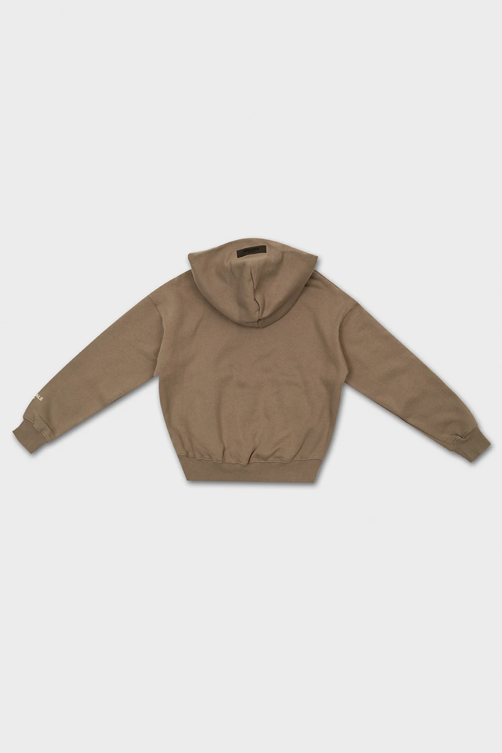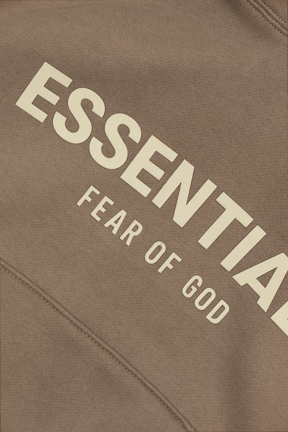 Szarobeżowa bluza z kapturem Fear Of God Essentials Kids. Wykonana z bawełny. Z przodu oraz na rękawie ozdobiona kremowym logo o aksamitnym wykończeniu. Na kapturze gumowa naszywka z logo w kolorze czarnym. Wsuwana kieszeń. Dół i długie rękawy zakończone ściągaczami.