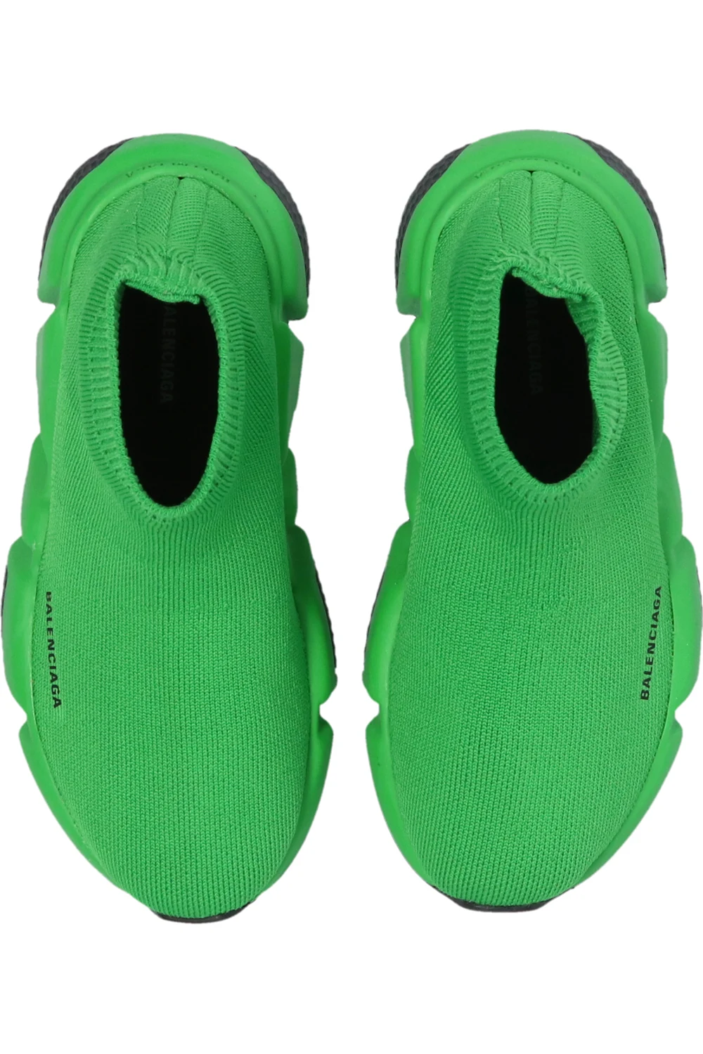 Zielone buty sportowe ze skarpetą Balenciaga Kids. Ozdobione nadrukowanym czarnym logo. Czarno-zielona, gumowa podeszwa.