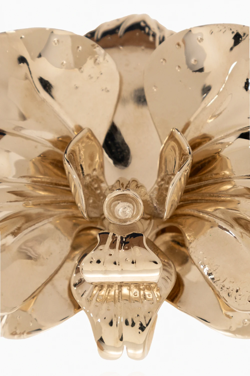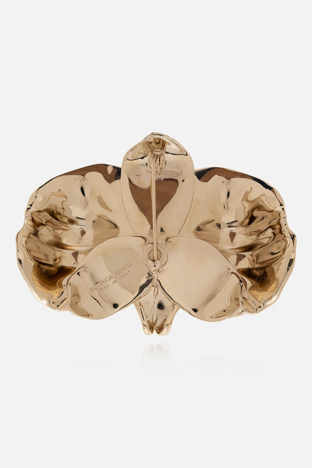 Broszka z motywem kwiatowym Bottega Veneta. Wykonana z mosiądzu pozłacanego 18-karatowym złotem.