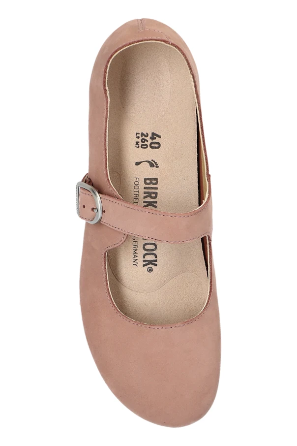 Buty „Santan Clarita” marki Birkenstock to wyrafinowane połączenie klasyki i nowoczesności. Precyzyjnie wykonane z różowej, zamszowej skóry naturalnej, odznaczają się subtelną miękkością oraz szlachetną fakturą. Charakterystyczny model ballerina z zaokrąglonym noskiem i minimalistycznym wzorem „Mary Jane” zdobi ozdobny pasek z elegancką, srebrną sprzączką.