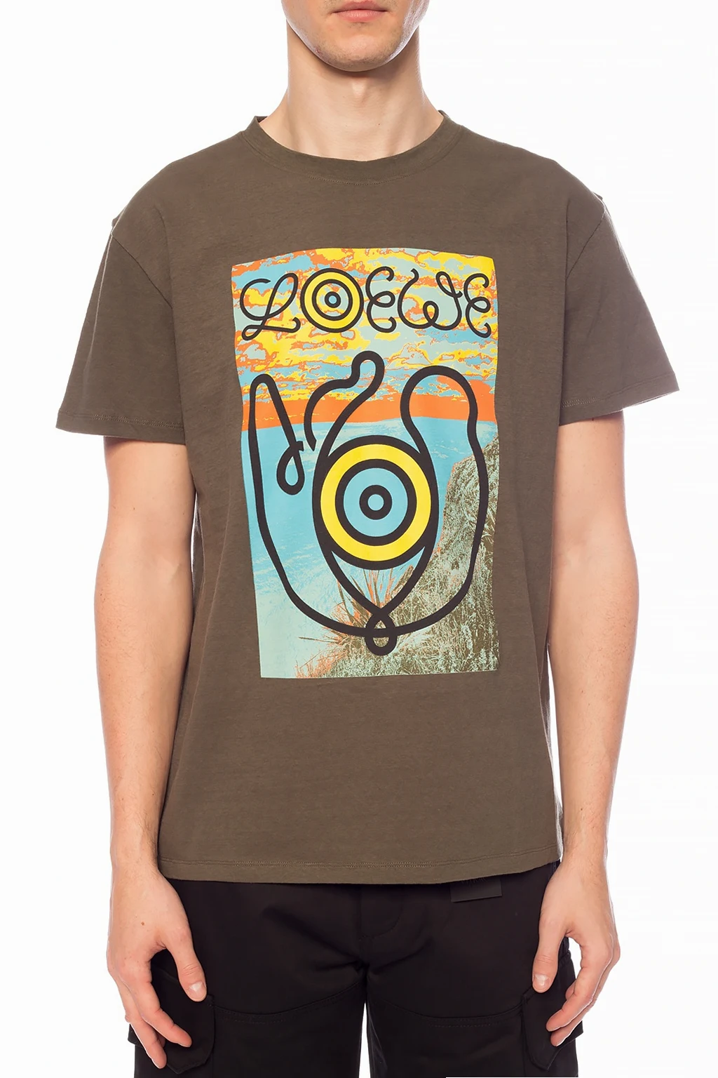 Zielony, bawełniany t-shirt Loewe, kolekcja 'Eye/LOEWE/Nature'. Ozdobiony kolorowym nadrukiem z logo. Okrągły dekolt.