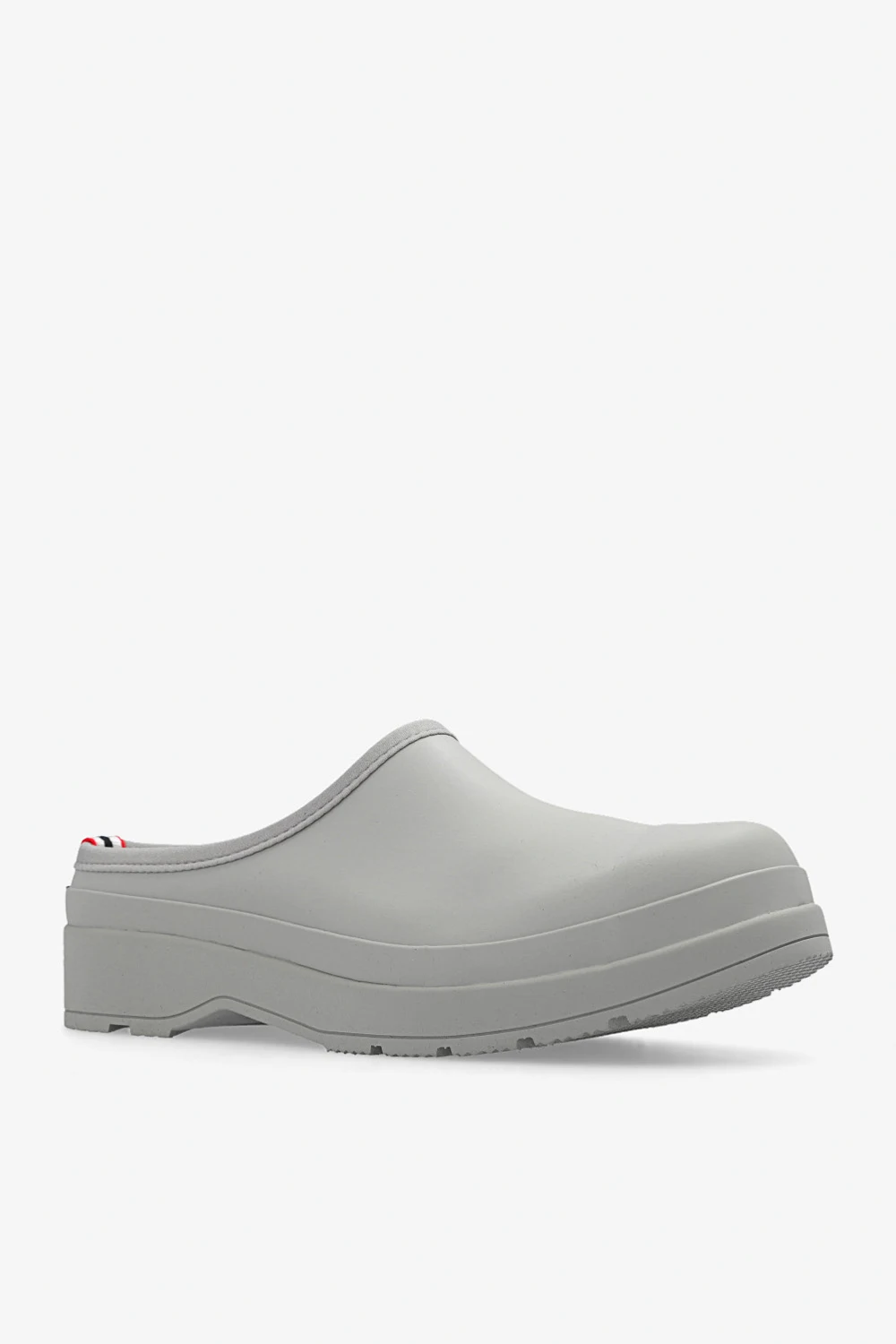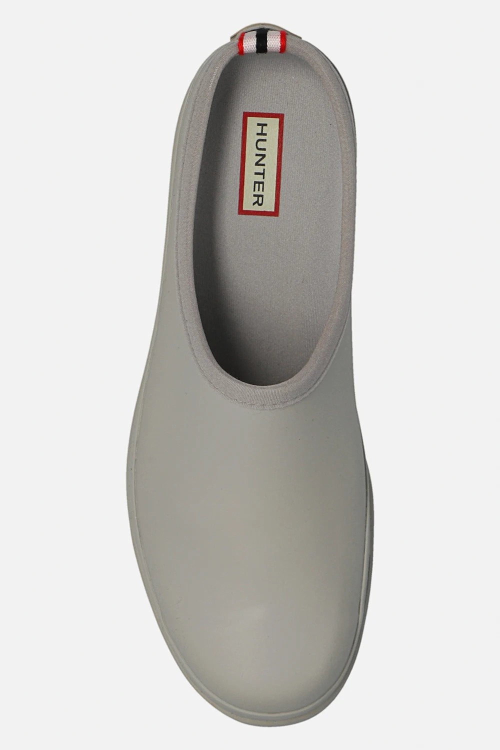 Szare buty, model ‘Original Play’ Hunter. Wykonane ręcznie z naturalnej gumy. Gumowa podeszwa zewnętrzna z charakterystycznym dla marki wzorem bieżnika.