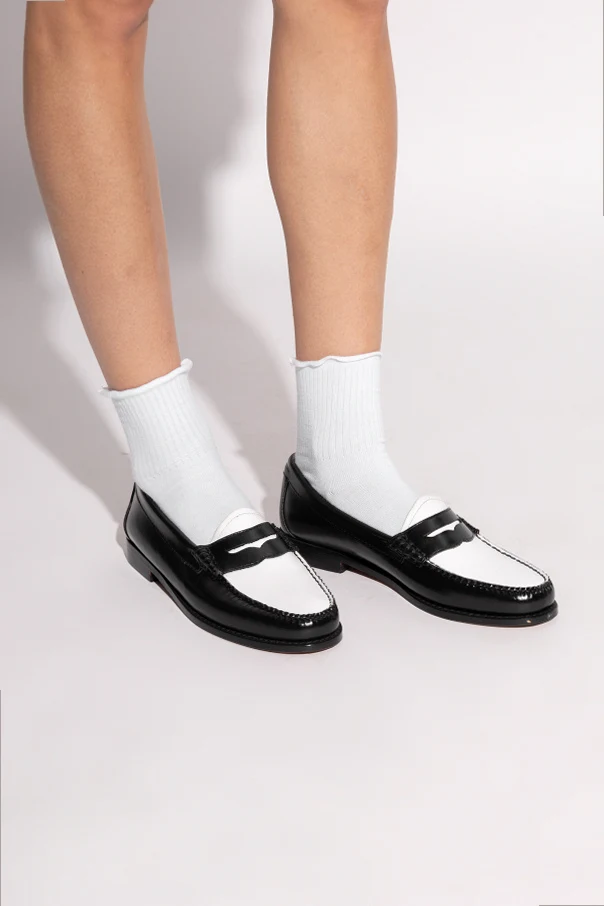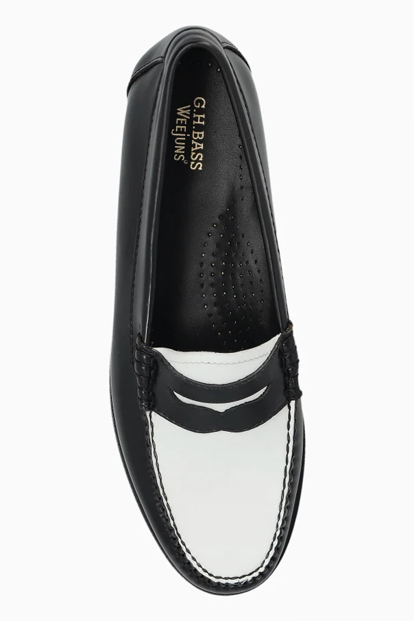 Buty 'Weejun' typu loafers projektu G.H. Bass & Co. stanowią synonim doskonałości i niewymuszonej elegancji. Smukły, klasyczny fason oraz zaokrąglony nosek harmonijnie współgrają z niskim profilem cholewki, tworząc ponadczasowy charakter obuwniczy. Unikatowa dwukolorowość — dominujący czarny odcień skóry z kontrastującą białą wstawką — urzeka subtelnością i wyrafinowaniem.