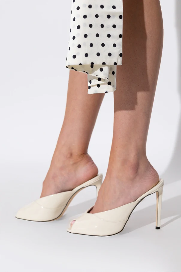 Klapki na obcasie „Brigitte” od Jimmy Choo to kwintesencja wyrafinowanego minimalizmu i klasycznego piękna. Utrzymane w kremowym odcieniu, zachwycają subtelnym połyskiem lakierowanej skóry, z której wykonano zarówno warstwę zewnętrzną, jak i wewnętrzną oraz podeszwę. Obuwie o charakterystycznej, wysmuklającej sylwetce prezentuje finezyjny, cienki obcas typu szpilka oraz otwartą piętę.