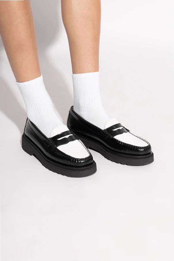 Buty ‘Weejun Step’ typu loafers autorstwa G.H. Bass & Co. to esencja ponadczasowej elegancji i wyszukanej prostoty. Klasyczna forma penny loaferów o zaokrąglonym nosku oraz niskim profilu została wzbogacona czarną, błyszczącą skórą naturalną , którą harmonijnie przełamuje kontrastowy biały panel na przedniej części cholewki. Finezję całości podkreślają precyzyjne szwy otulające biel oraz charakterystyczny pasek “penny keeper”.