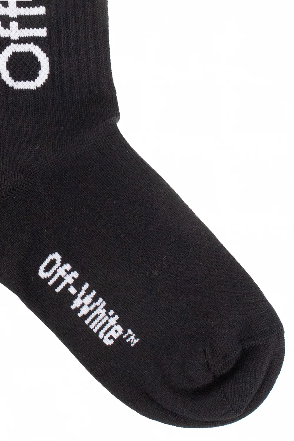 Czarne, bawełniane skarpety Off-White Kids. Ozdobione wyszytym białym logo. Zakończone ściągaczem.