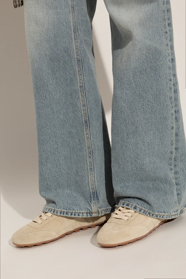Cholewka tych sneakersów wykonana jest z wysokogatunkowego zamszu w eleganckim, kremowym kolorze. Harmonijnie dobrane płaskie sznurowadła oraz starannie tłoczone logo na języku i wewnętrznej wkładce nadają całości szlachetności. Wnętrze wyściełano miękką skórą, zaś elastyczna, gumowa podeszwa zapewnia komfort każdego kroku.