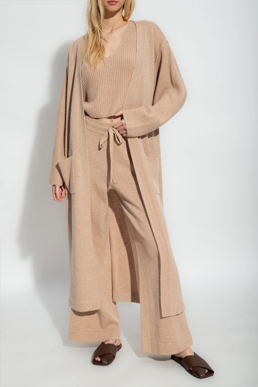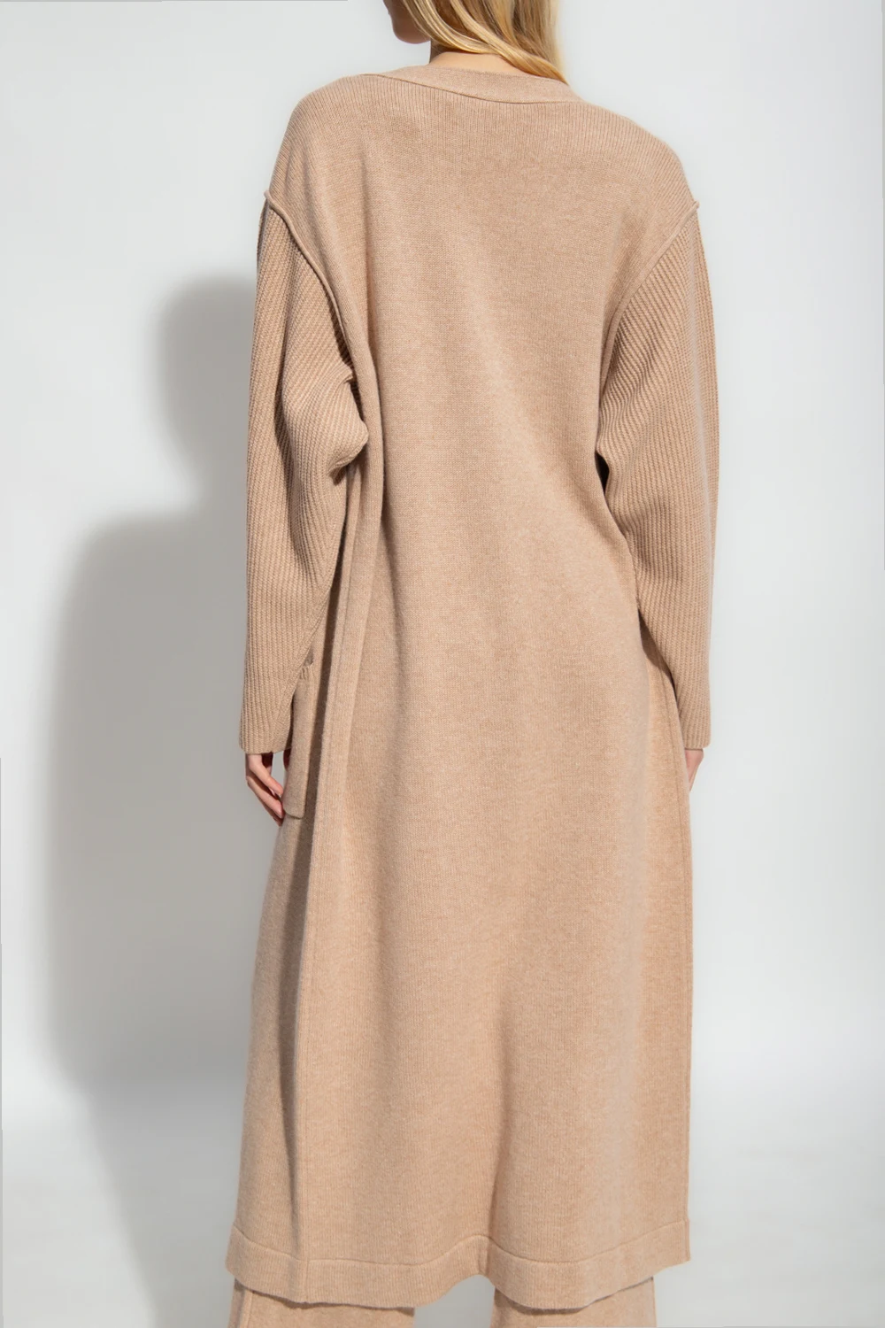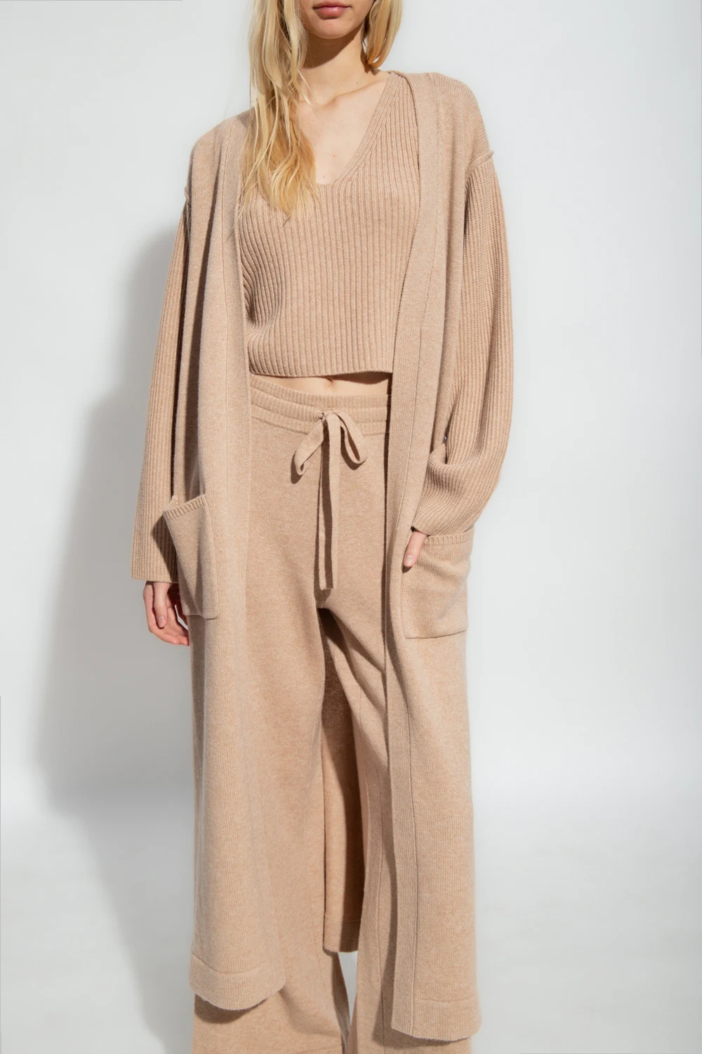 Beżowy kardigan, model ‘Aime’ Eres. Wykonany z wełny i kaszmiru. Dwie wsuwane kieszenie. Długie rękawy.